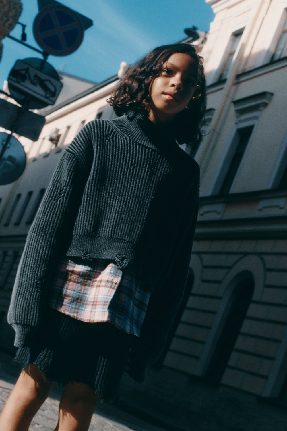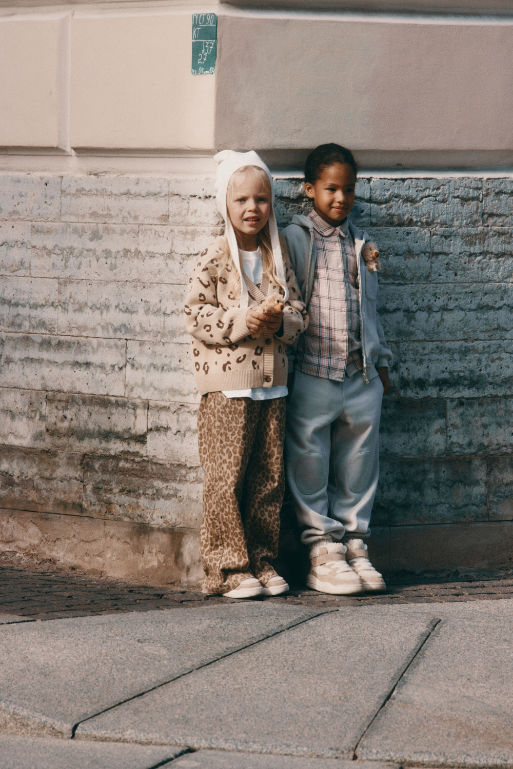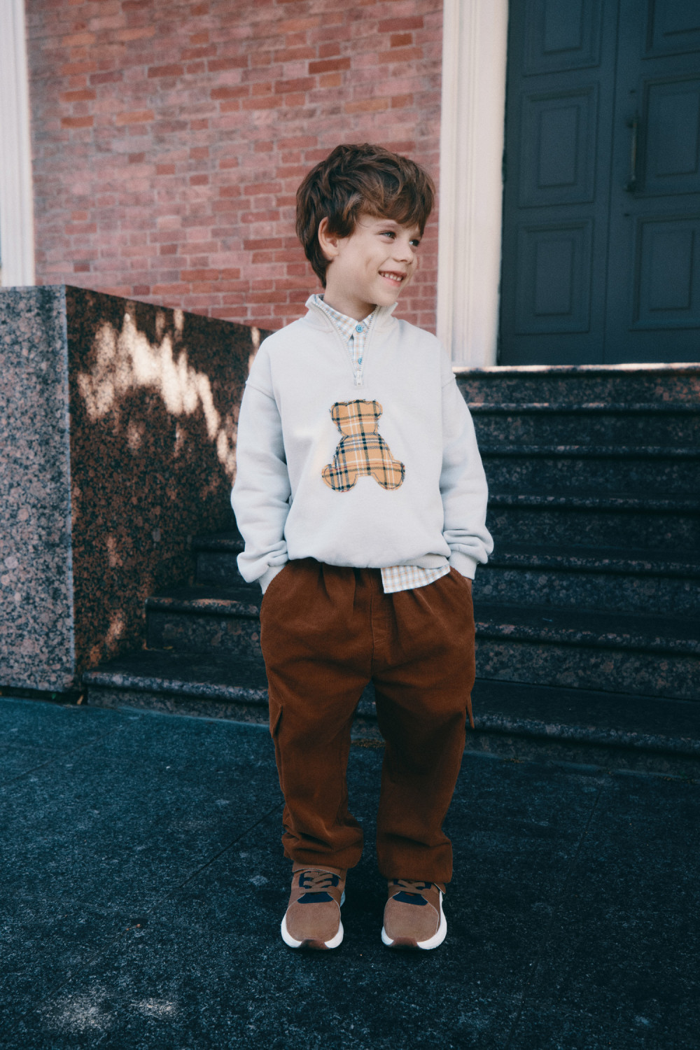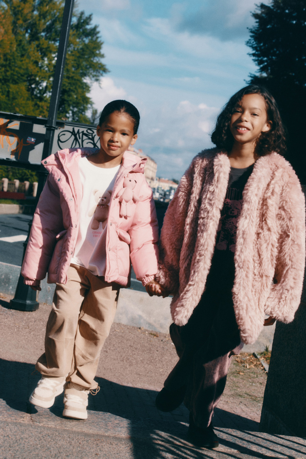 Коллекция включает в себя брюки-карго и игривые юбки, лонгсливы и футболки с объемными принтами — все это создает атмосферу беззаботного детства. Куртки и свитеры с нашивками в виде медведей придают образам очарование, а нежные, воздушные ткани добавляют легкости и свободы движений. Также в линии представлены базовые вещи: мягкие комплекты из флиса, вельветовые комбинезоны, рубашки в клетку и пуховики, которые идеально подходят для активных игр и легко сочетаются друг с другом.