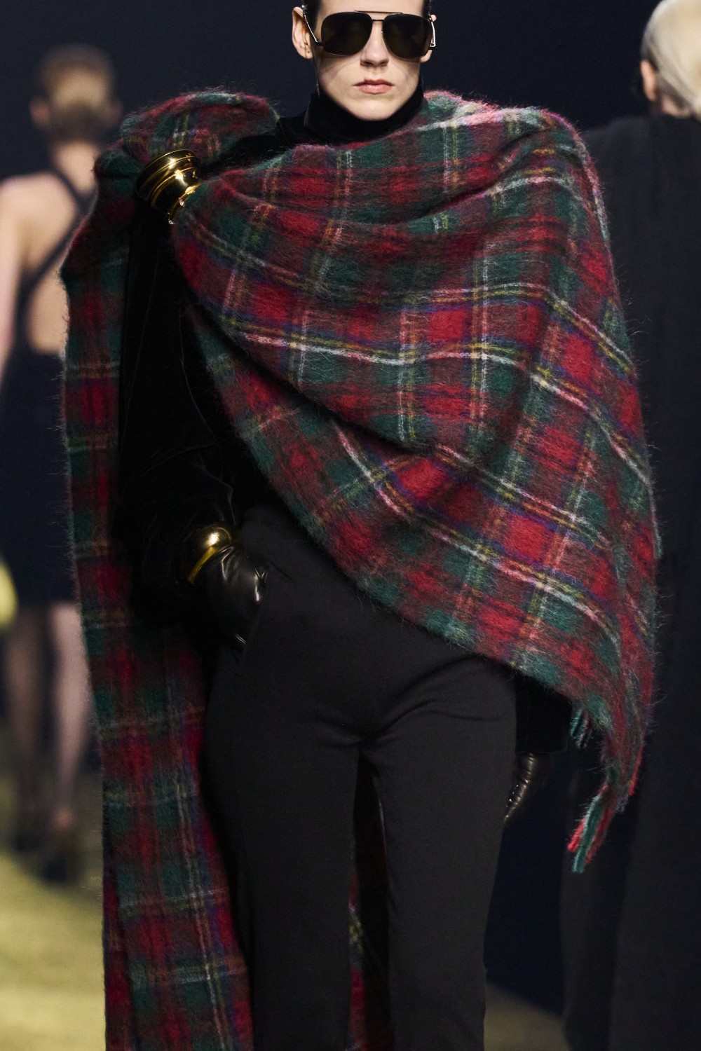 Суық күндері көріністердің сыртынан көлемді шарфтарды жауып ал. Аутфитті бұзудан қорықпа: дұрыс таңдалған аксессуар оны тек безендіреді және оны қиындатады. Сен тағы да Saint Laurent шоуынан шабыт ала аласың, онда көптеген модельдердің суреттері көрпе тәрізді шарфпен безендірілген. Ең бастысы: аутфитті тым түрлі-түсті етпе. Монохромды заттар басып шығарылған шарфтардың астына көбірек сәйкес келеді. Мысалы, Burberry шарфты қоса алғанда, сары тор реңктің көрінісін ұсынды.