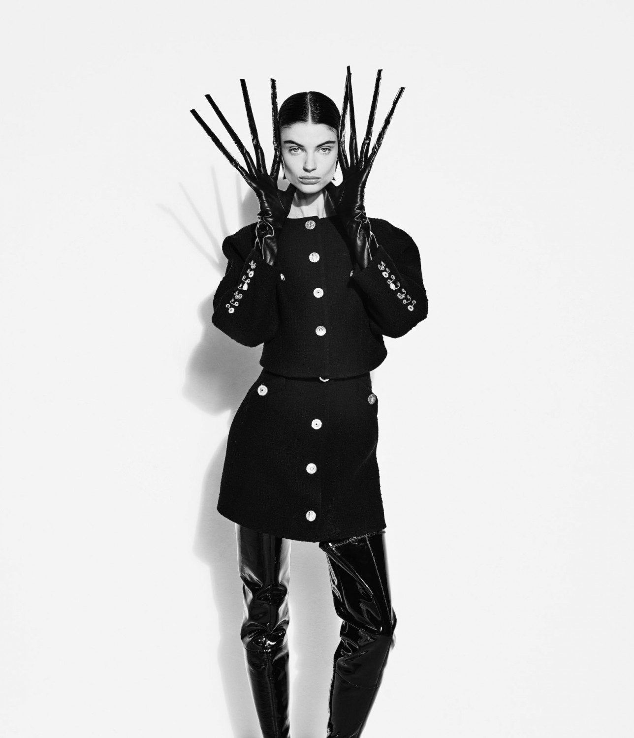 Новую коллекцию прет-а-порте модный дом Schiaparelli решил представить в digital-формате. Если быть точнее - серией черно-белых снимков, отбрасывая экстравагантность цветов для готического сюрреализма.