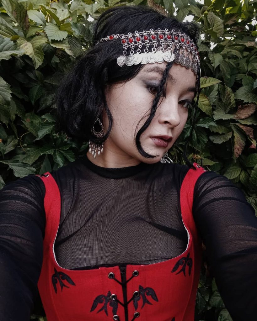 Помимо этого дизайнер andzhidesign совместила образ своего авторского корсета с шекелік и сырға.