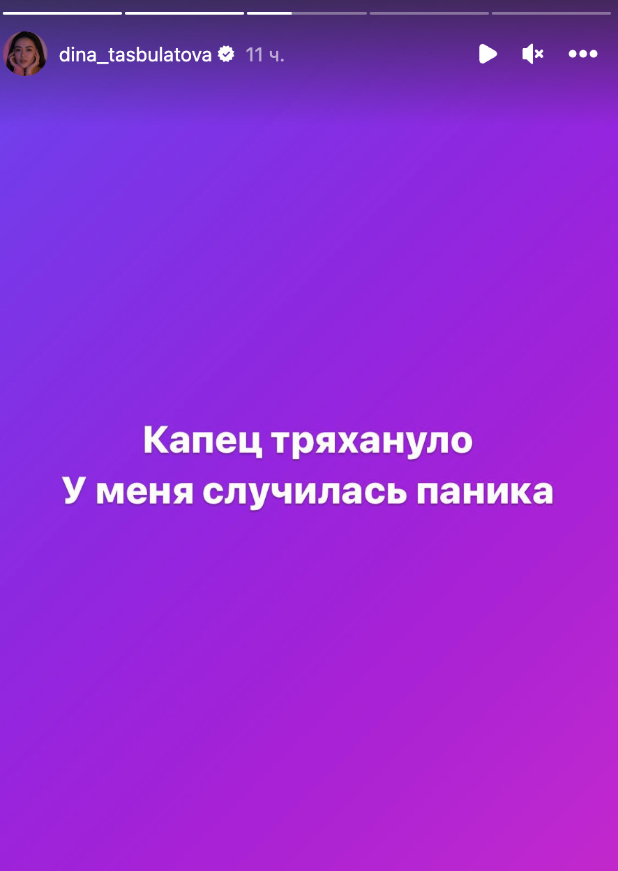 Актриса Дина Тасбулатова сообщила, что поддалась панике. Она тоже выбежала на улицу вместе с котом и близкими, а после уехала за город, отстояв очередь на заправке.