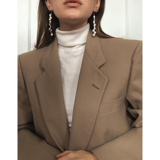 Заполнить пустое пространство. Собранные волосы открывают шею, визуально делая вас выше. Только между воротником пиджака и лицом ничего нет. Пустота, которую немаловажно заполнить правильными вещами. Отличным выбором станут серьги. Как водопады, так и скромные пусеты. Они могут обладать четкой формой, хаотично свисать или быть объемными.
