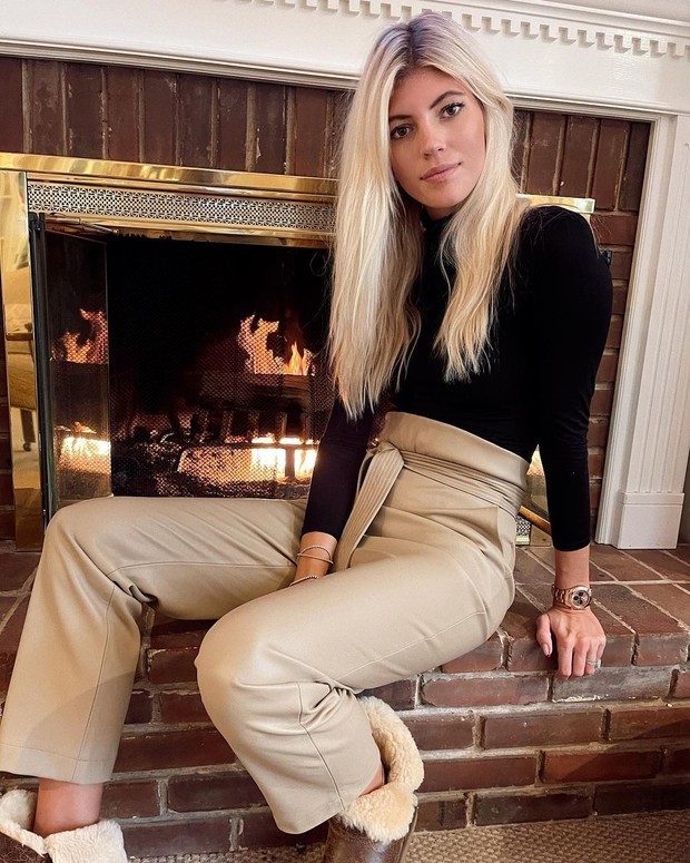 Рождественские праздники она провела в доме своих родителей в уютном и стильном образе облегающей черной водолазке, светлых кожаных брюках с высокой посадкой и в обуви на овчине. Роскоши зимнему аутфиту добавили золотой хронограф и несколько теннисных браслетов.