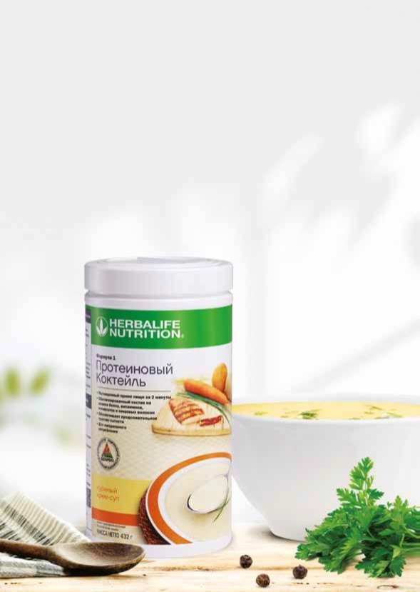 Образ жизни большинства казахстанцев за последние несколько десятилетий сильно изменился, но рацион и привычки питания остались прежние. К огромному сожалению, большую популярность набрали фаст-фуд и общепит, который в целях экономии использует далеко не самые полезные продукты. Не удивительно, что каждый второй житель Казахстана имеет избыточную массу телу. С этим нужно бороться и это задача, над которой компания Herbalife Nutrition в глобальном масштабе работает уже 40 лет. Опыт, полученный за эти годы, позволяет предугадывать желания и потребности людей современного ритма жизни. Формула 1 Куриный крем-суп – это полноценный прием пищи со всеми необходимыми микро- и макронутриентами за 2 минуты! Приятного аппетита!