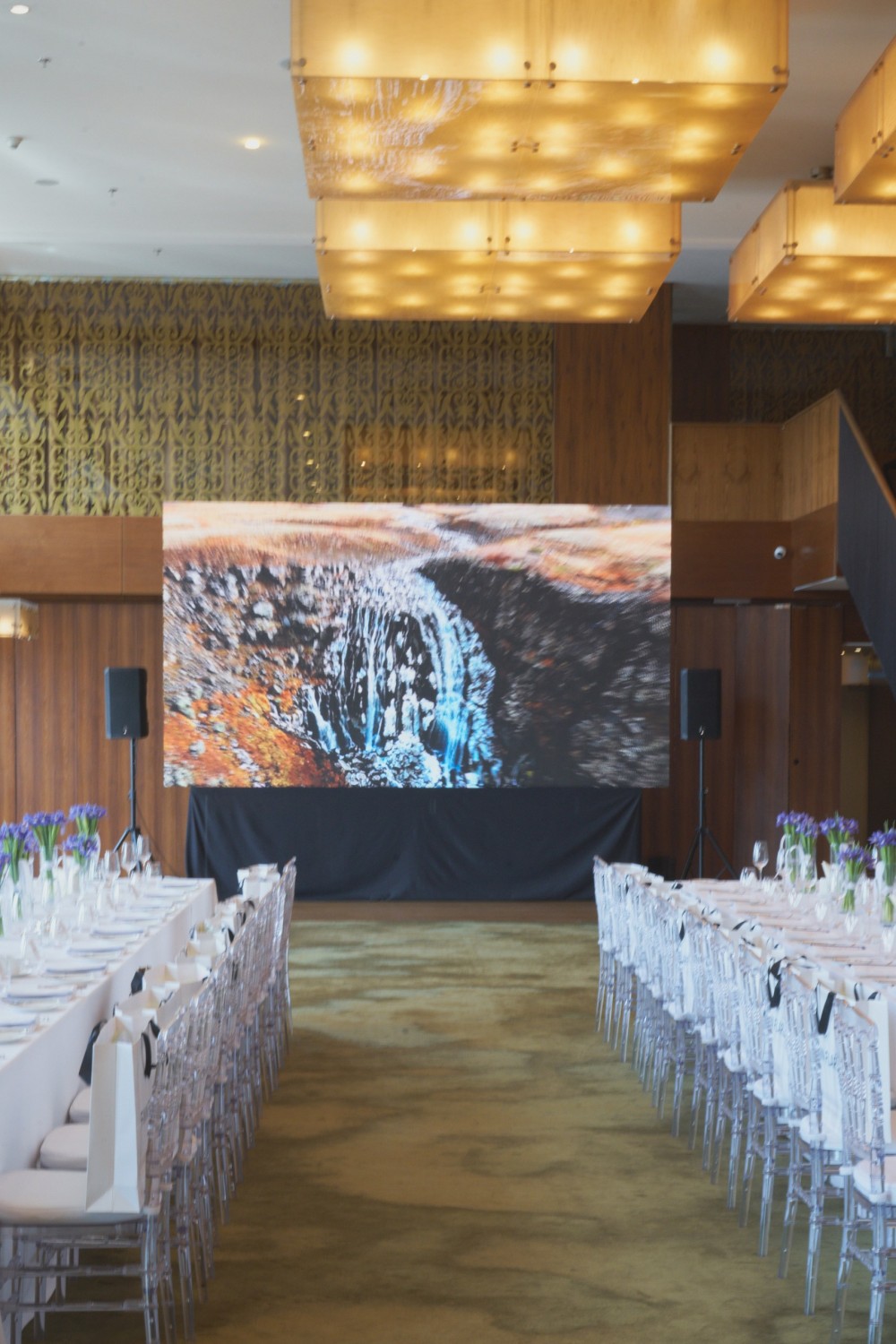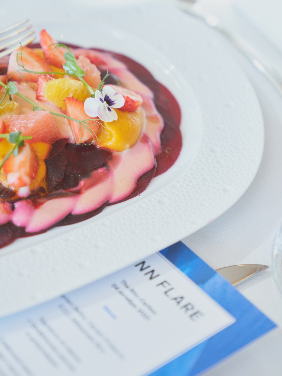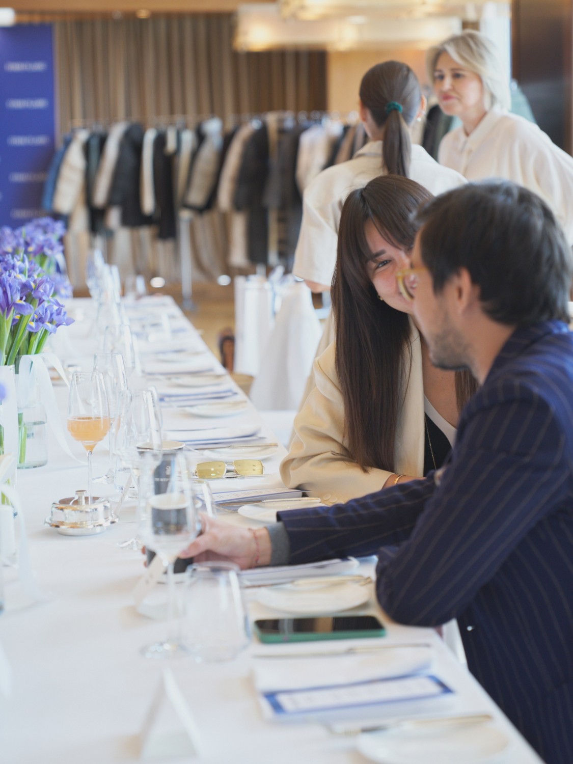 В зале, украшенном по случаю ирисами, гостей угощали изысканными блюдами и предлагали Bellini на аперитив. Гости наслаждались гастрономическим великолепием и знакомились с новой коллекцией бренда.
