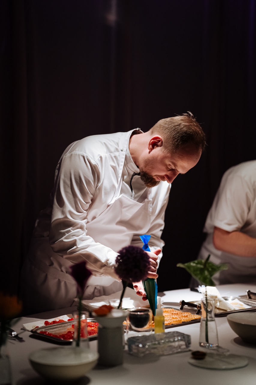 За кухню отвечал Ликарион Солнцев – шеф-повар ресторана «Красота» и по совместительству шеф-резидент ресторана "Chef’s Table" в Москве. У гостей вечера выпала возможность не только попробовать необычные вкусовые сочетания, но и узнать захватывающие истории зарождения каждого блюда.