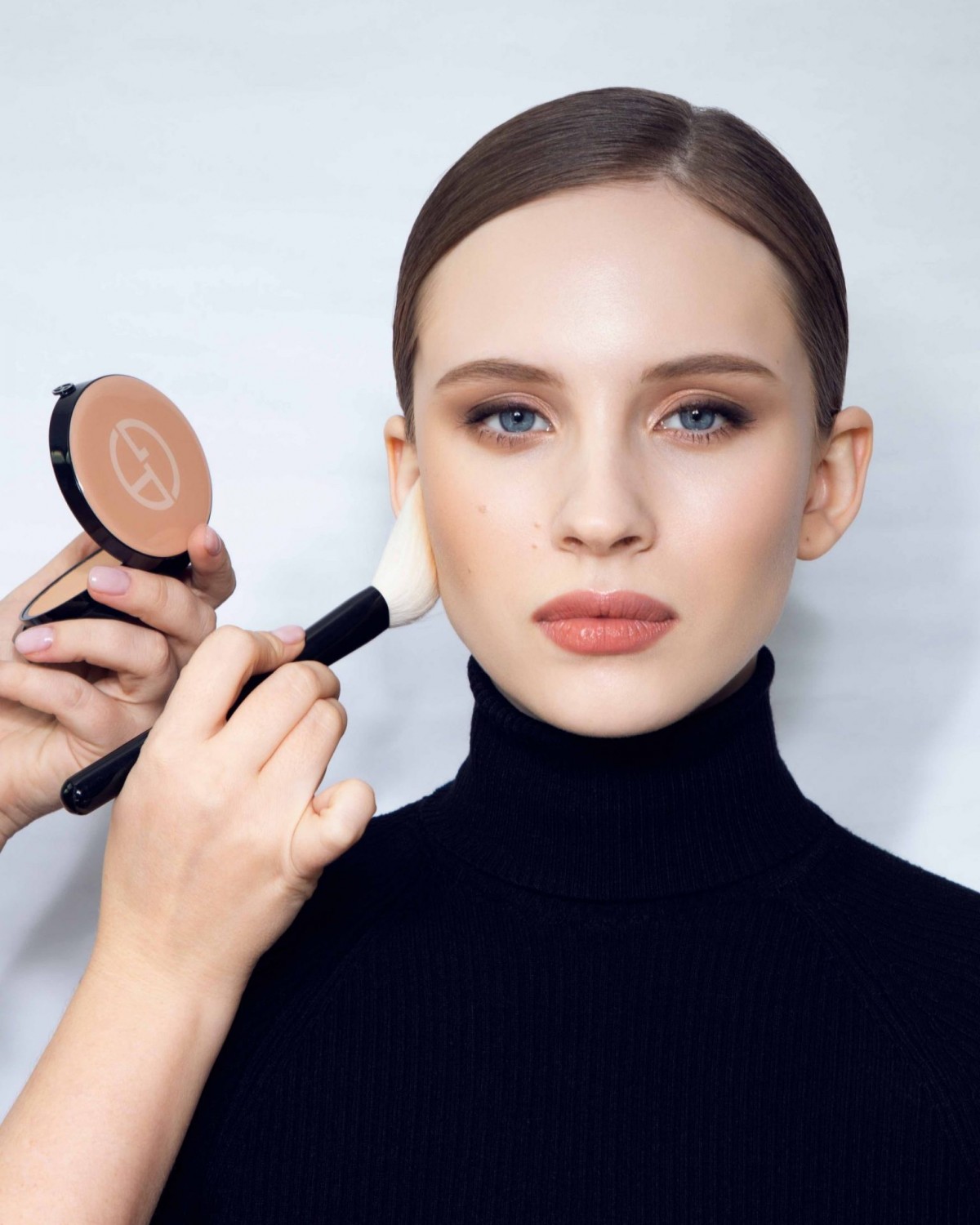 В качестве финального штриха расставьте акценты на скулах с помощью пудры Luminous Silk Glow Fusion Powder (на фото оттенок 6,5). Этот прием сделает лицо более выразительным, а пигменты, помещённые в гибкие микросферы визуально разгладят мелкие мимические морщинки и микрорельеф кожи для безупречного и естественного вида.