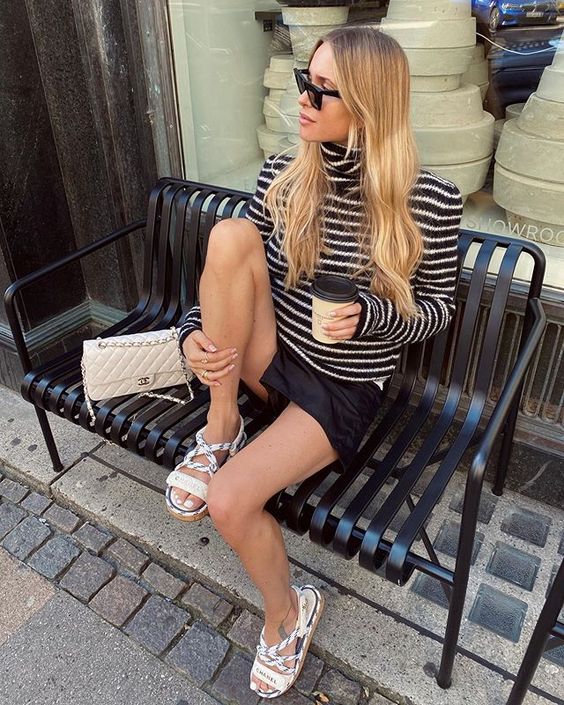 И кстати, это тот самый момент, когда можно смело носить горизонтальную полоску, не рискуя при этом выглядеть полнее.