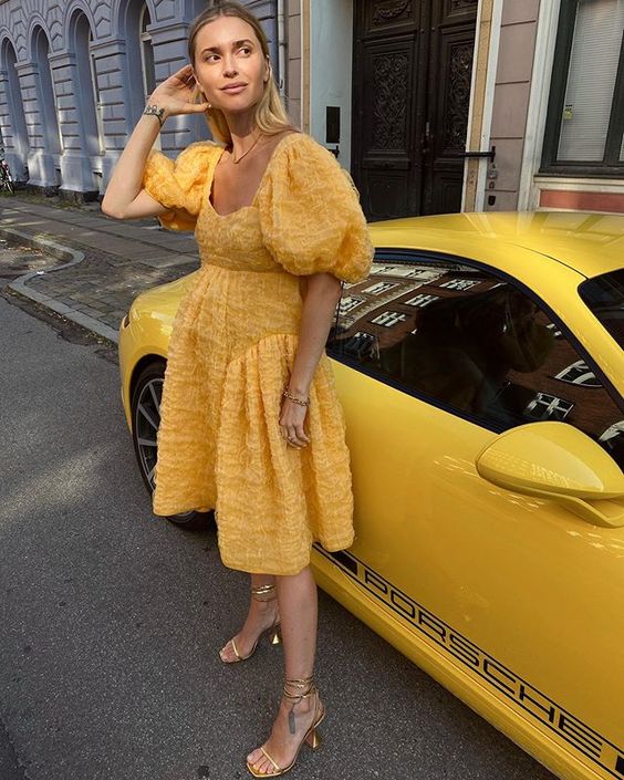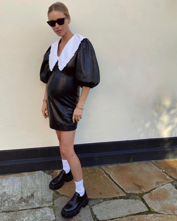 Шесть месяцев Перниль скрывала свою беременность и вот теперь блистает в своих модных образах. Ведь она так любит платья и не пытается заменить их чем-то другим. Платья с объемными рукавами дизайнера Cecilie Bahnsen сменяет мини-платье от Prada голубого цвета или платье-комбинация.
