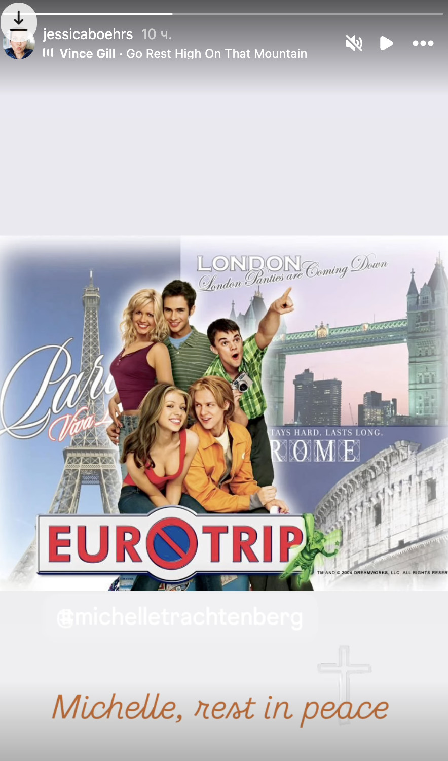 Коллега Мишель по фильму «Евротур» разместила в Instagram Stories афишу ленты, подписав: