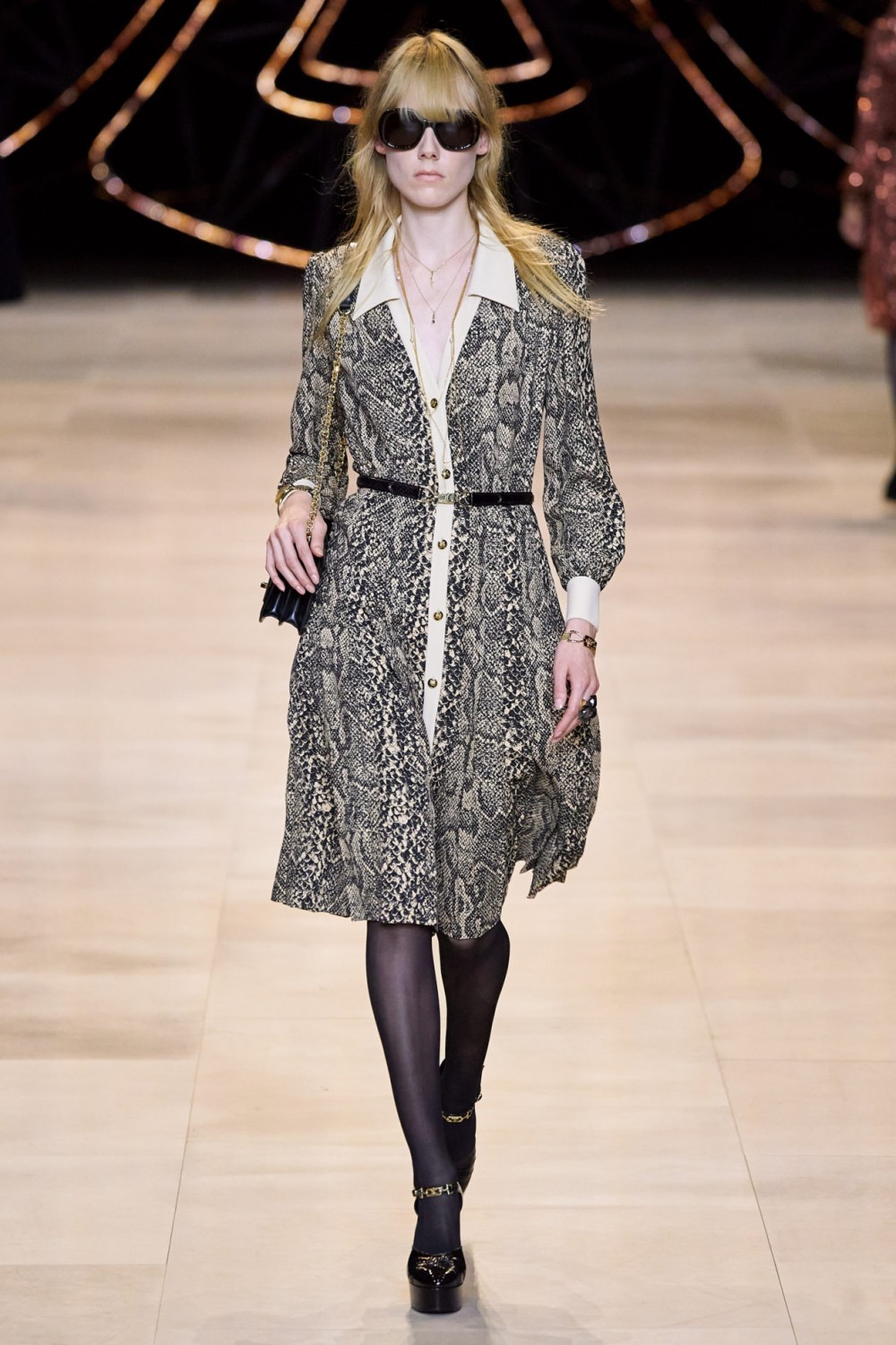 Змеинный принт появлялся чаще, чем другие анималистичные принты. Дизайнеры использовали его довольно активно в обуви и аксессуарах, но также на подиумах мелькали юбки и платья.