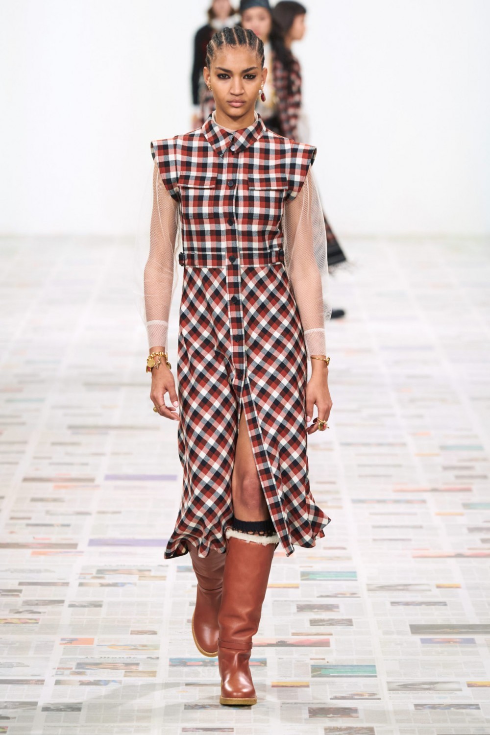 Этой осенью клетка на пике популярности. На каждом показе, во всех главных модных городах мира, можно увидеть разнообразие клеточного принта: Тартан, Принц Уэльский, Мадрас. Выбирайте на любой вкус и сочетайте с лаковой кожей как Saint Laurent, или с другой цветной клеткой как Miu Miu.