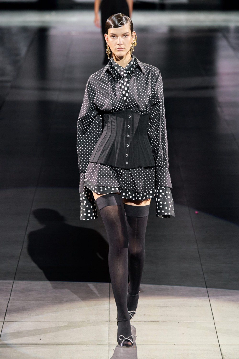 Еще один принт, который никогда не выходит из моды – горох. На показе Saint Laurent было представлено множество вариантов использования платков и шарфов. D&G дает нам вдохновение на использование данного принта в платьях, блузках и даже галстуках. Chloé использует горошек в сочетании с узорами, дополняя образы модными воротничками.