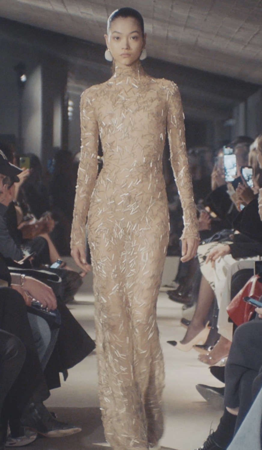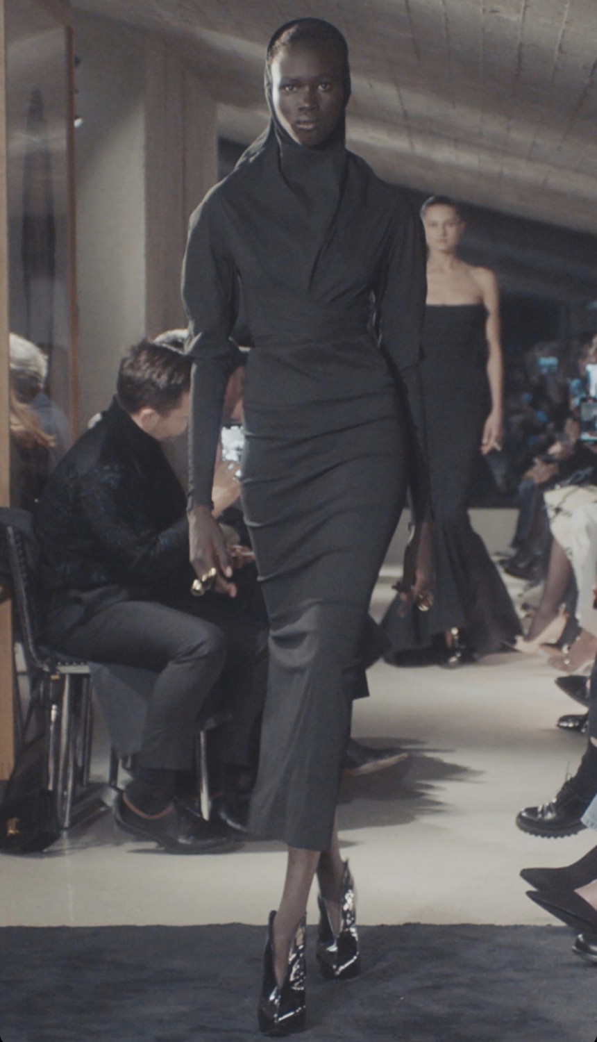 Пока модные дома покоряли Париж, Maison Alaïa отправился в Антверпен. Креативный директор бренда Питер Мюлье решил представить новую коллекцию в достаточно интимной обстановке — в своей трехэтажной квартире 1972 года, построенной в стиле брутализма. Личная библиотека, гостиная и даже спальня дизайнера — такие декорации были выбраны для показа. Модели выходили под медитативную композицию Time авторства Hans Zimmer, а избранные гости расположились на скамейках перед столом и даже на кровати.