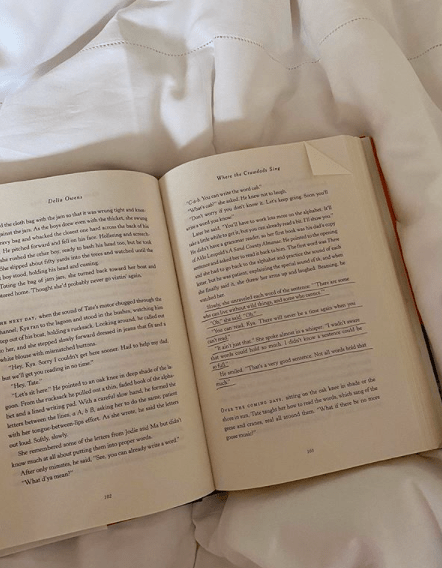 А Роузи Хантингтон-Уайтли читала "Там, где раки поют" Делии Оуэнс. И даже загибала страницы.
