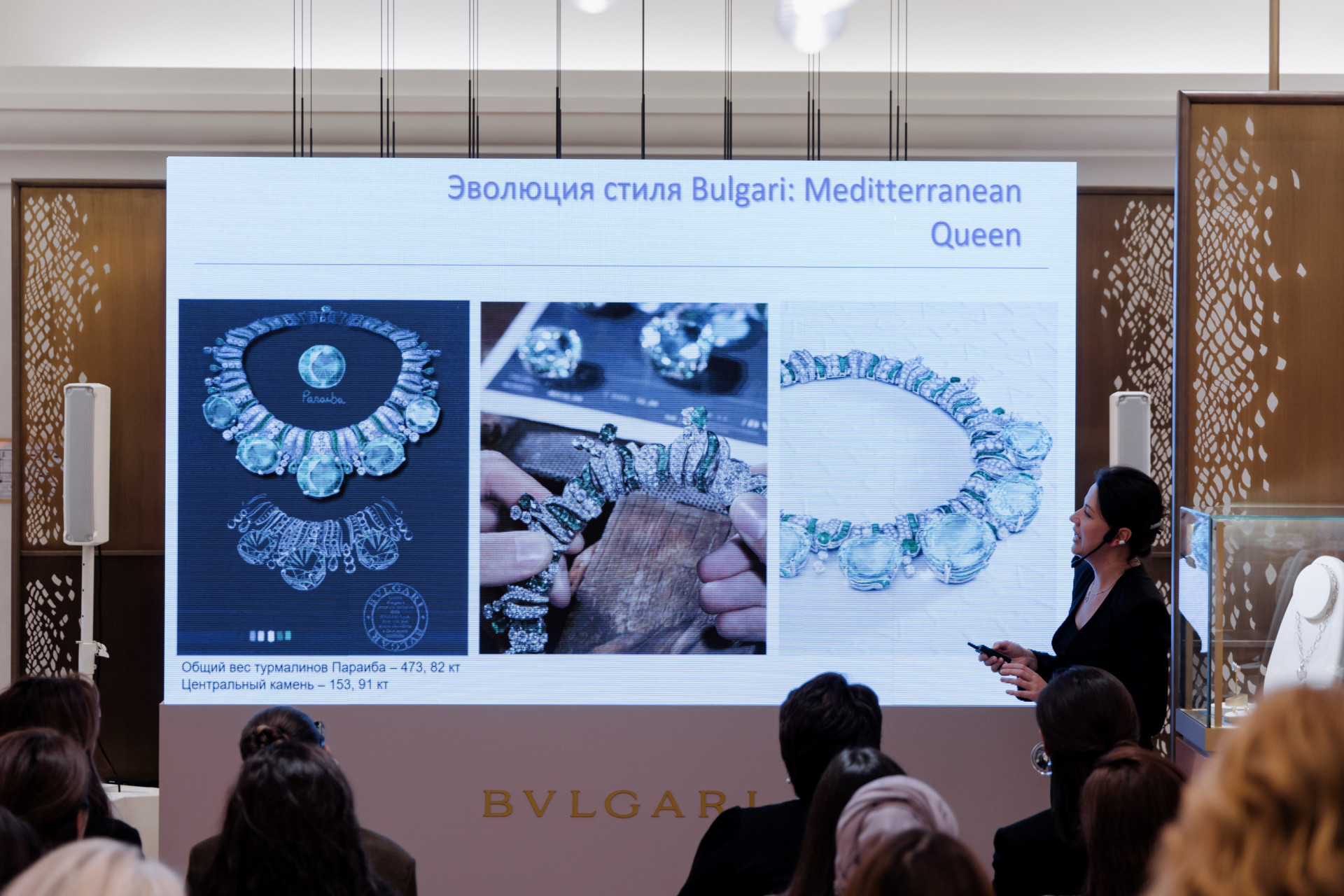 В астанинском бутике Bvlgari состоялась лекция международного эксперта Елены Новоселовой, директора образовательных программ Геммологического центра МГУ. После весеннего семинара в Алматы, где она делилась секретами правильного выбора драгоценных камней, на этот раз внимание было сосредоточено на фаворитах итальянского бренда. Елена подробно рассказала о таких драгоценностях, как изумруды, сапфиры и рубины, а также о менее известных, но не менее ценных камнях, которые завоевали популярность среди знатоков в последние годы, таких как турмалины Параиба, спессартиты и шпинели.