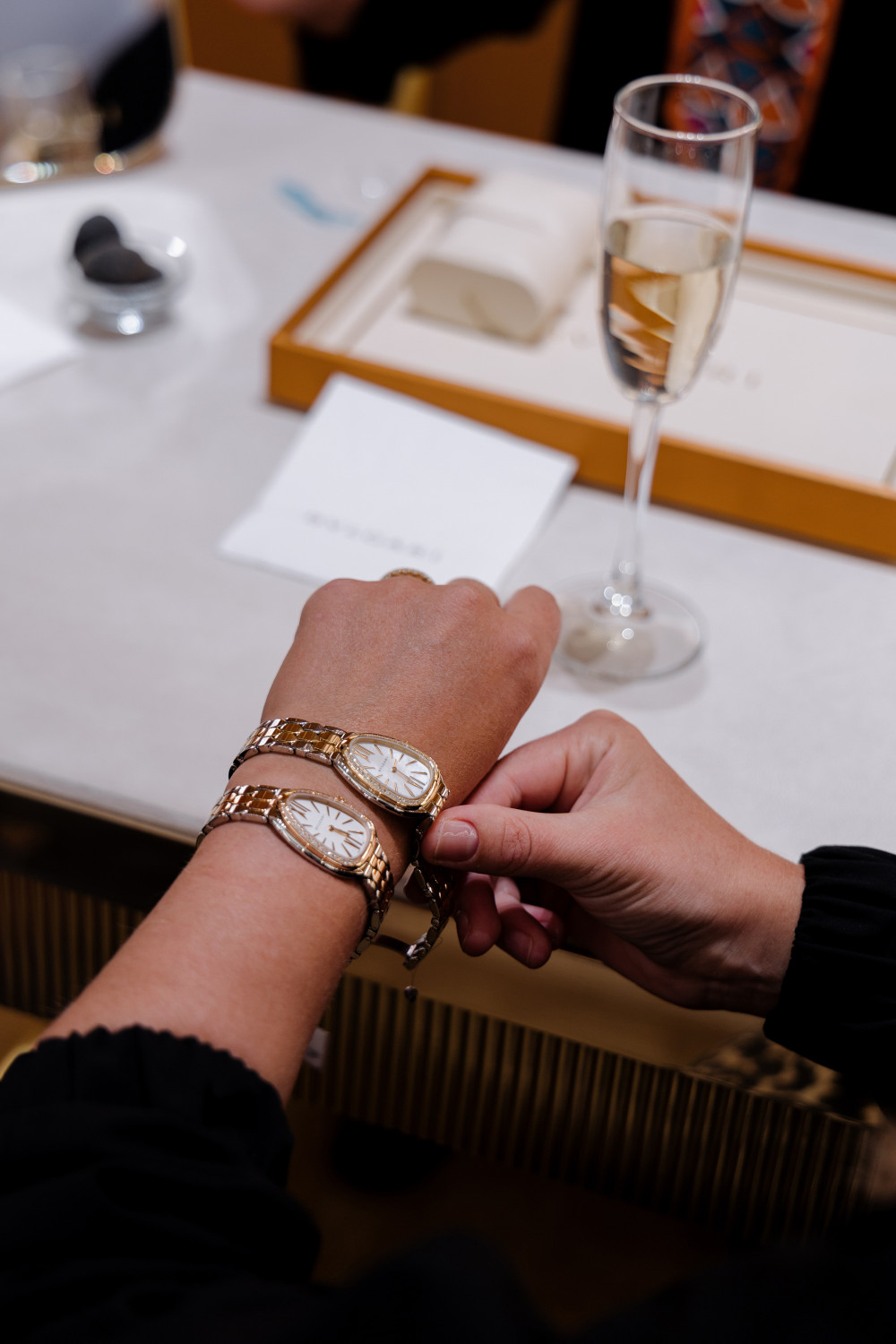 Во время коктейля гости смогли познакомиться с коллекциями высокого ювелирного искусства Colour Treasures и Mediterranea, а также примерить уникальные шедевры Bvlgari, насладившись атмосферой истинного ювелирного великолепия.