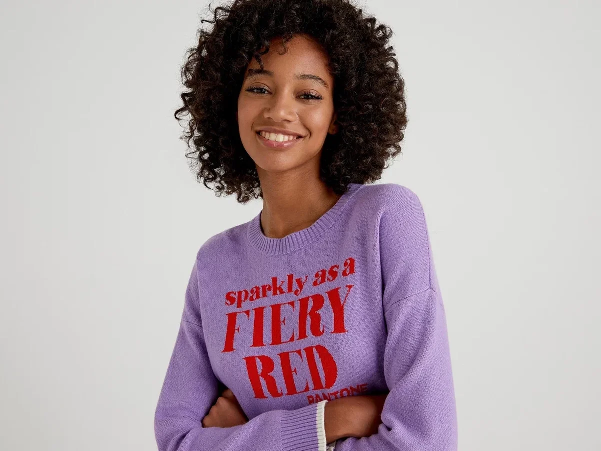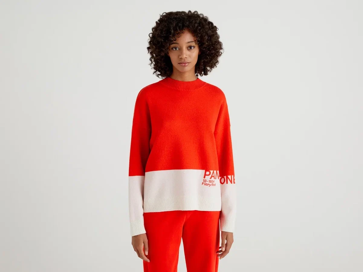 Вслед за Valentino итальянский бренд United Colors of Benetton выпустил коллекцию совместно с Pantone. Цвет дикой орхидеи, темного ириса, волшебной птицы королька, глубокий огненно-красный — каждый предмет из коллаборации назван в стилистике института цвета.