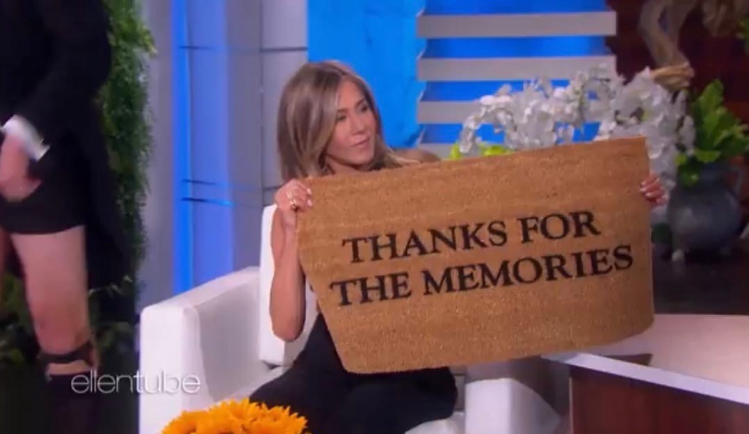 "Мне нравится твой стендап, я бы снова хотела увидеть тебя", - сказала Дженнифер в надежде на продолжение карьеры. "Хорошо, я могу дать тебе работу. Я срочно ищу людей, в моем доме нужно сделать многое", - также пошутила она. Не обошлось и без сентиментальных моментов. Актриса подарила Эллен прощальный подарок - тот самый коврик с надписью "Спасибо за воспоминания", как и 19 лет назад.
