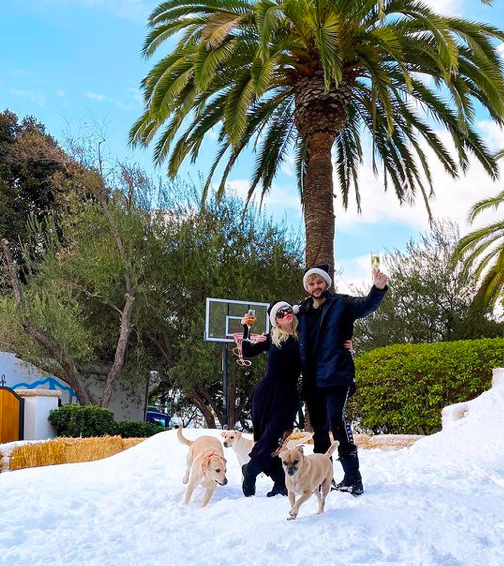 Кристина Агилера с семьей провела этот день дома. Вместе с детьми и бойфрендом Мэттью Ратлером они устроили настоящую рождественскую сказку. С помощью специальной пушки они распылили искусственный снег и вместе с собаками повеселились на славу.