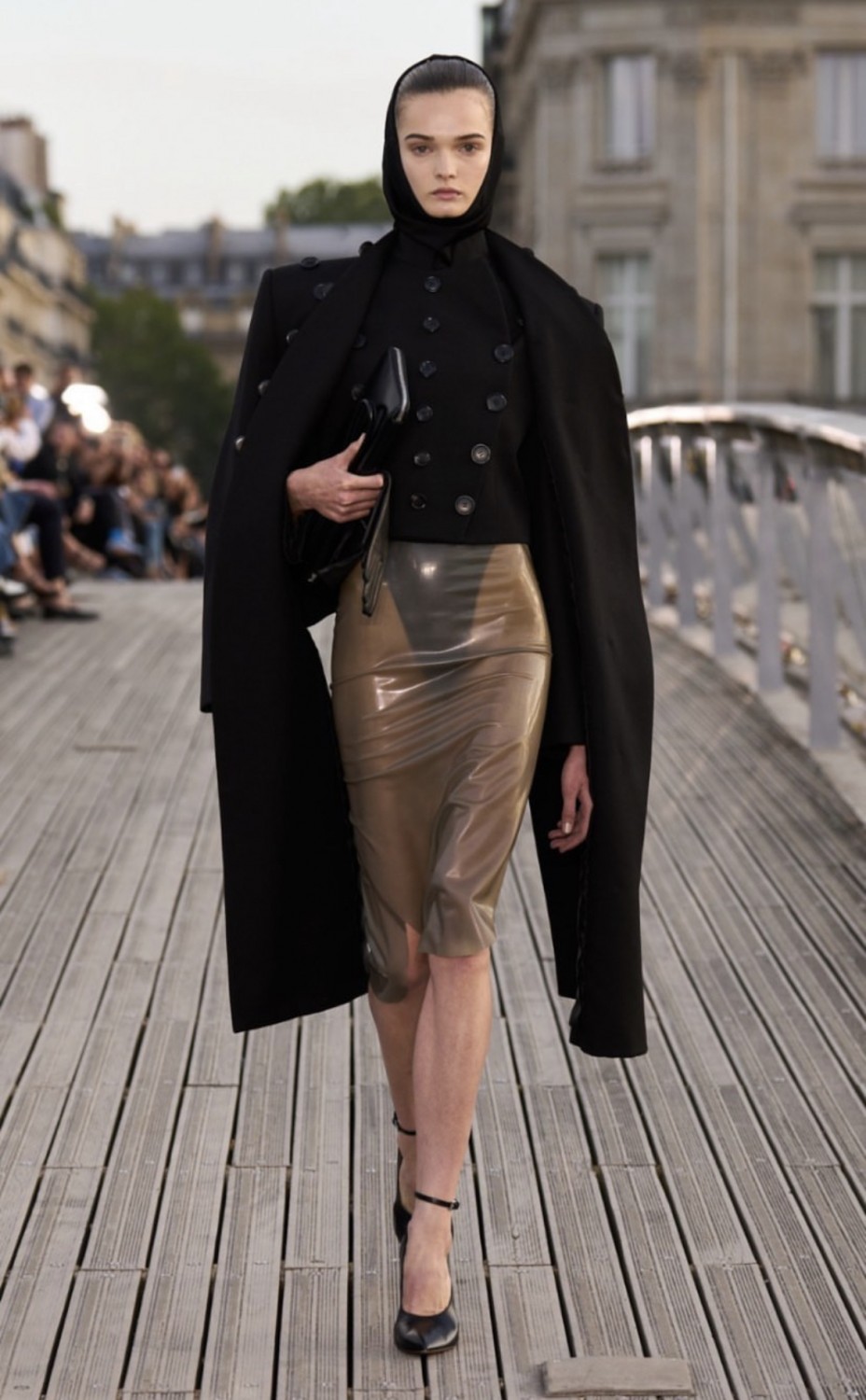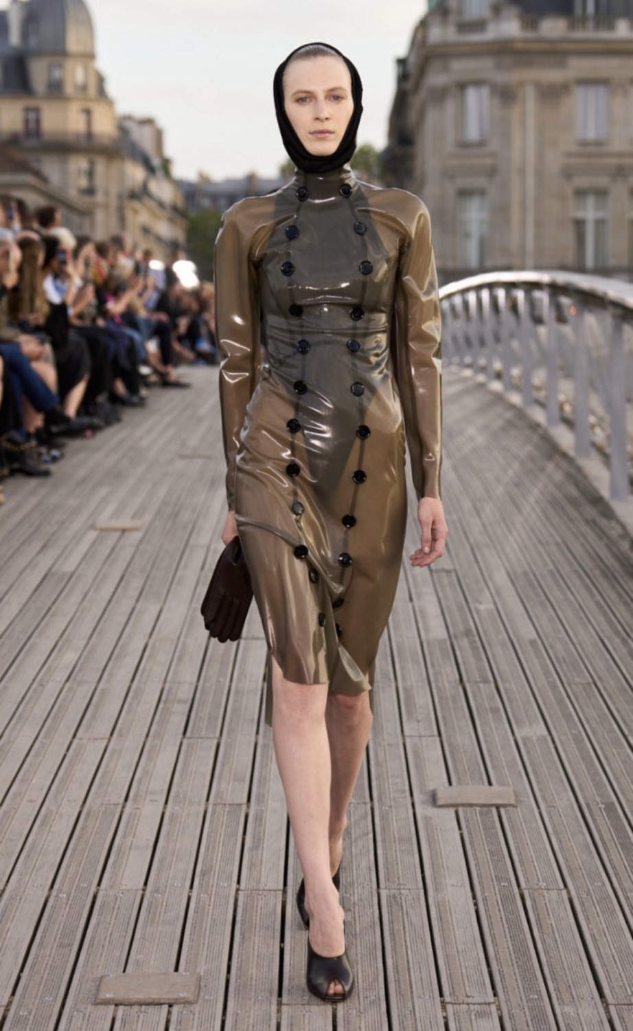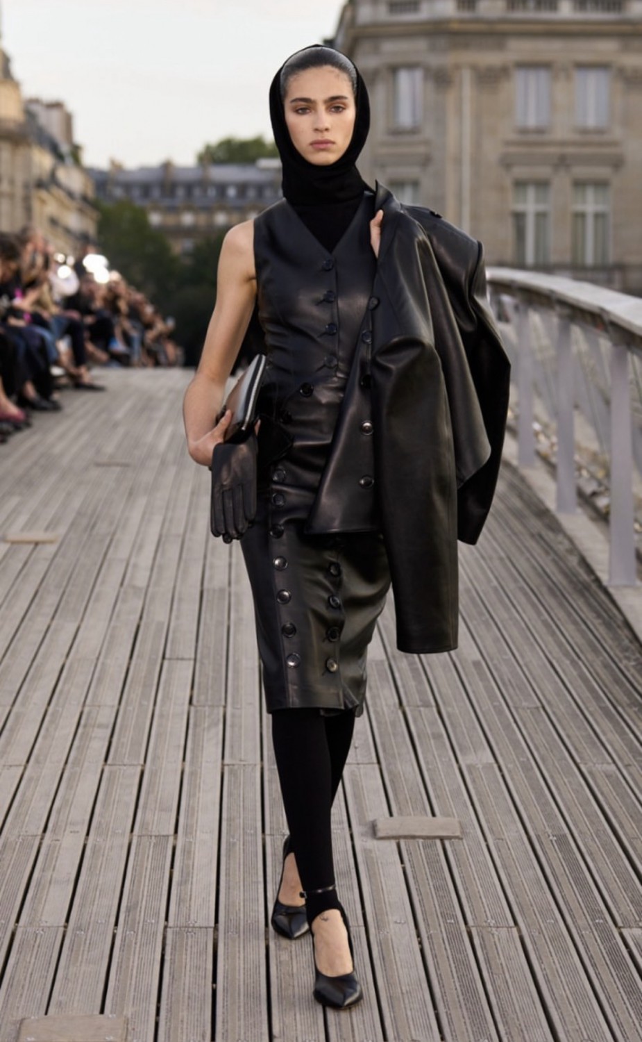 В качестве пригласительных французский дом моды разослал гостям брендированные складные стулья из натуральной кожи. И несмотря на то, что Париж в настоящее время переживает беспорядки, Alaïa не стал откладывать шоу — мост Леопольда-Седара-Сенгора, превратился в подиум. От фирменных капюшонов и облегающих фигуру силуэтов до ярких шпилек и эффектных драпировок — Питеру Мюлье сезон за сезоном удается сохранять и наследие бренда, и создавать вневременные и интригующие изделия, которые крадут сердца модниц по всему миру.