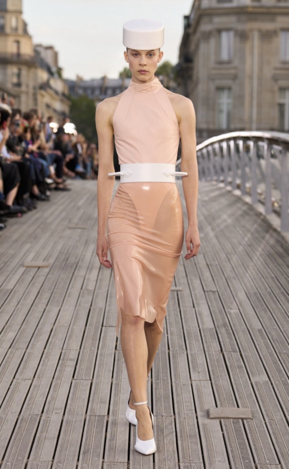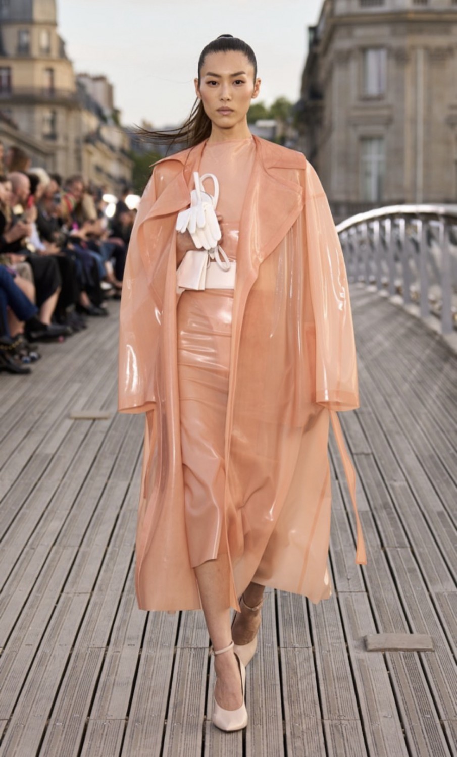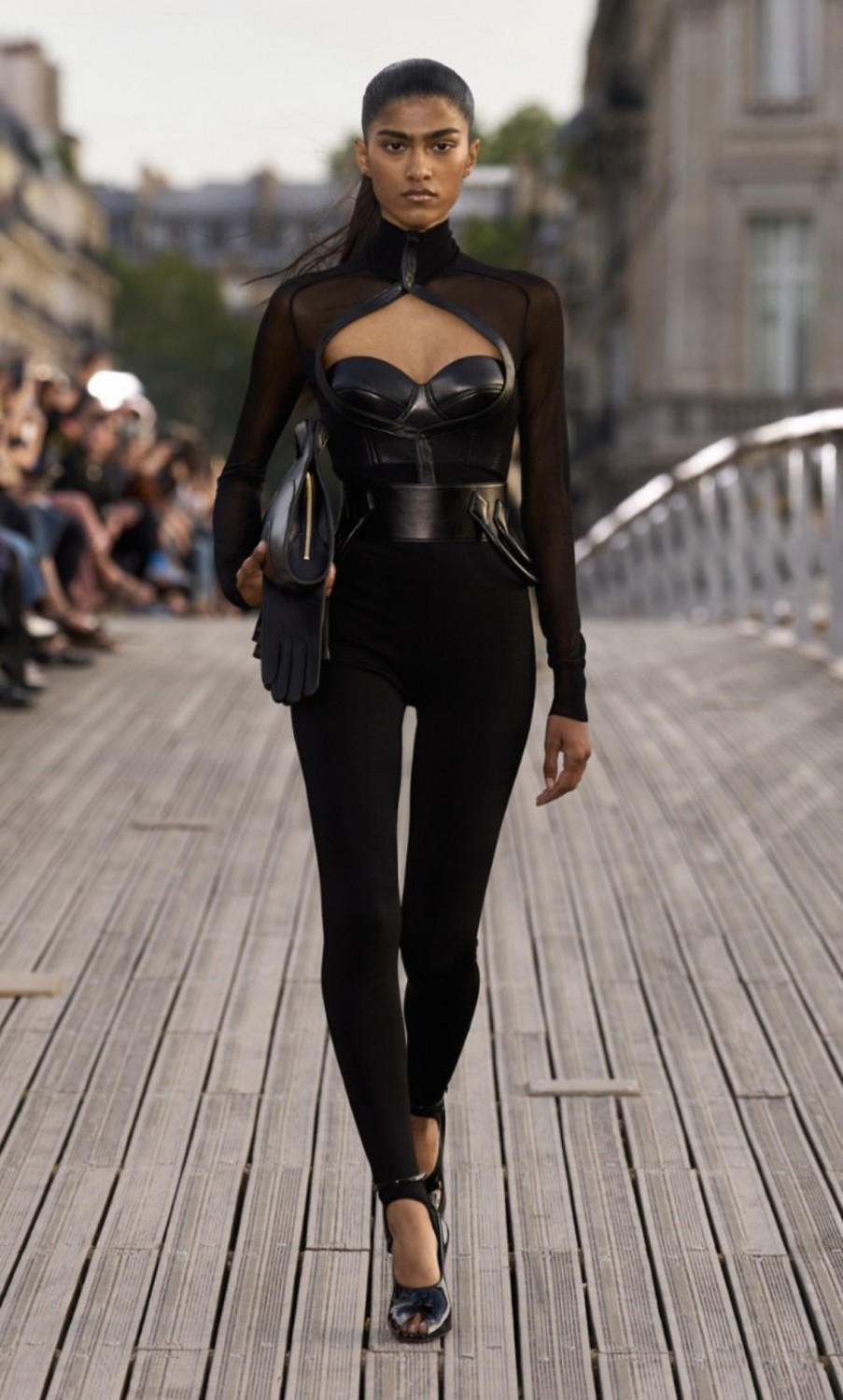 В качестве пригласительных французский дом моды разослал гостям брендированные складные стулья из натуральной кожи. И несмотря на то, что Париж в настоящее время переживает беспорядки, Alaïa не стал откладывать шоу — мост Леопольда-Седара-Сенгора, превратился в подиум. От фирменных капюшонов и облегающих фигуру силуэтов до ярких шпилек и эффектных драпировок — Питеру Мюлье сезон за сезоном удается сохранять и наследие бренда, и создавать вневременные и интригующие изделия, которые крадут сердца модниц по всему миру.