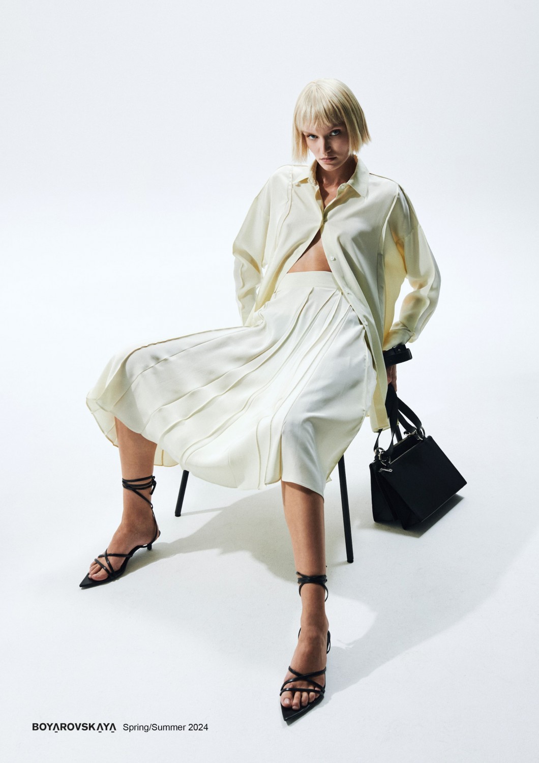 В этом сезоне Мария Бояровская решила поэкспериментировать с концепцией «плоской» одежды. Данная идея отличается от типичной моды и представляет поиск разумного баланса между жесткими формами и изящными линиями.