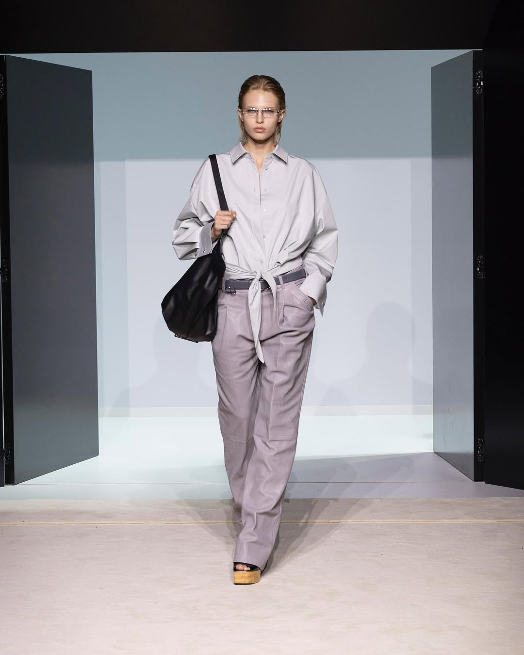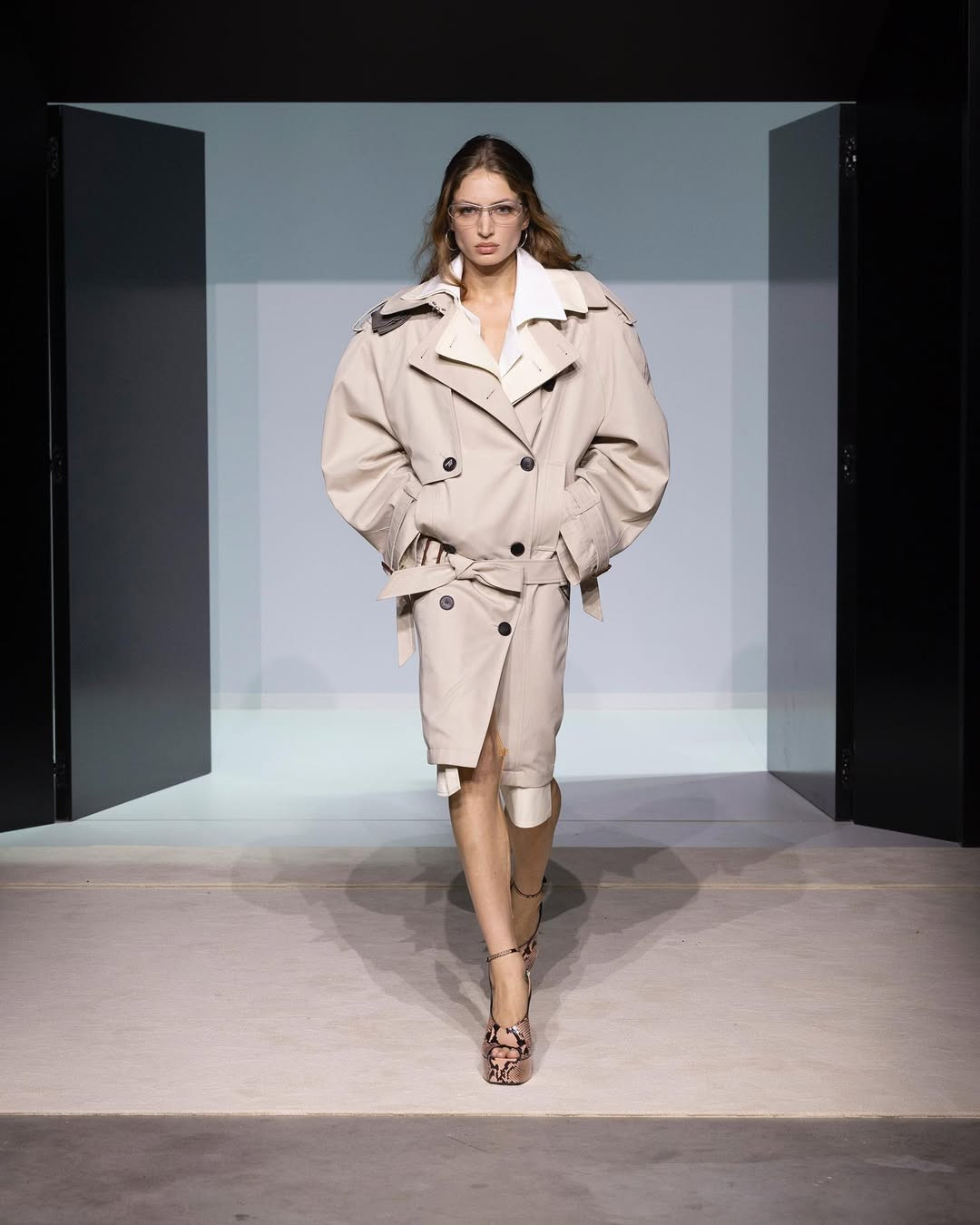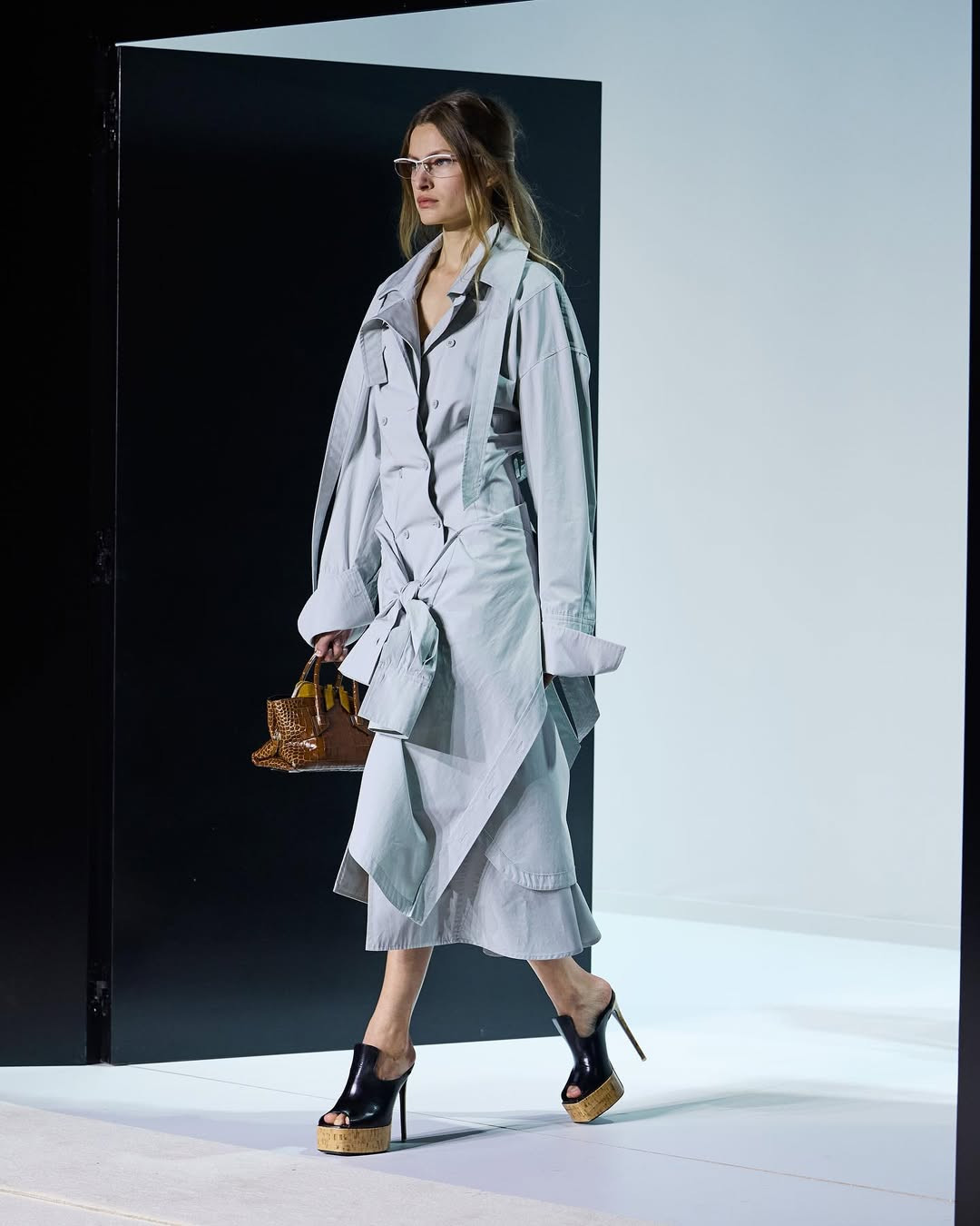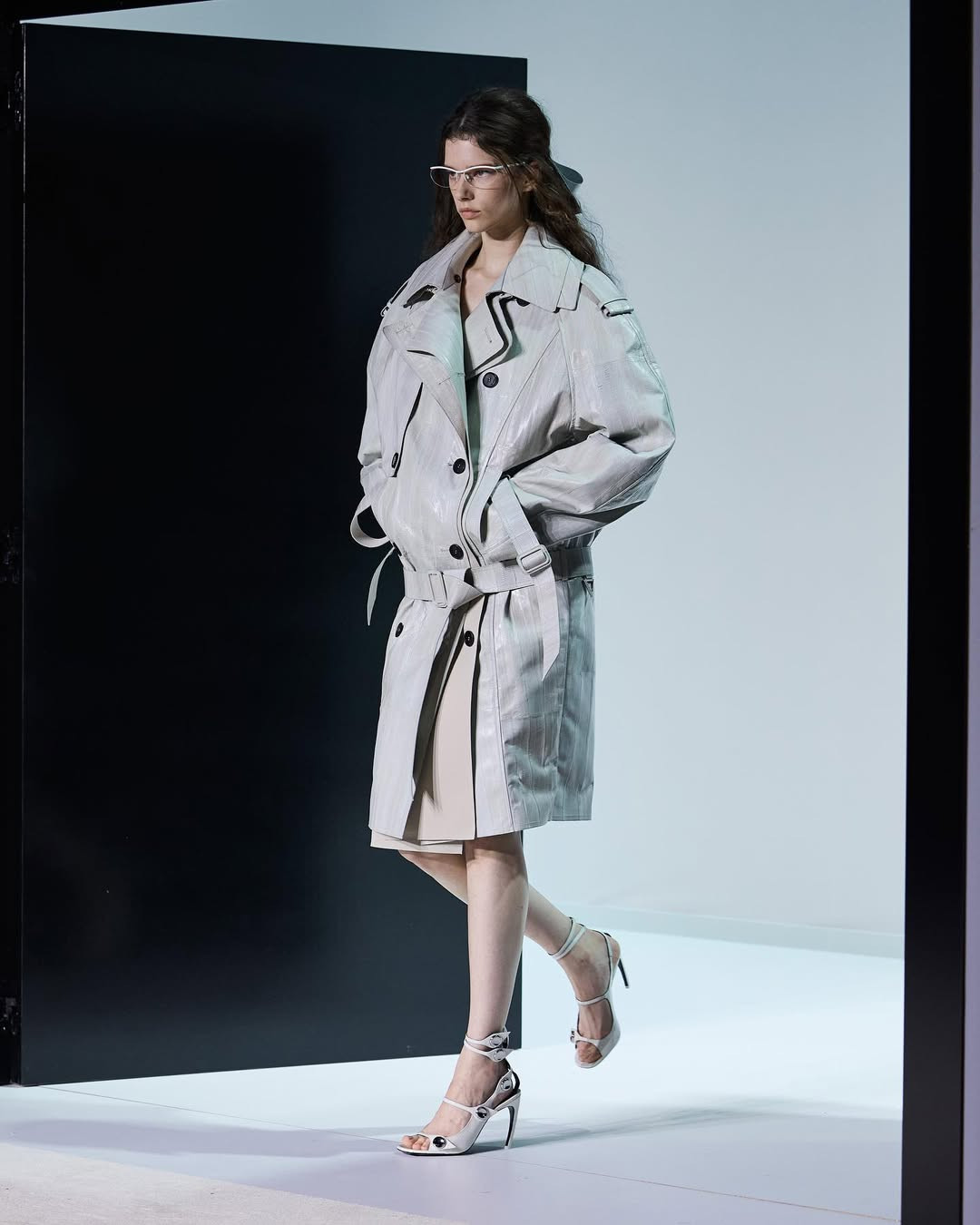 Показ прошел в белом кубе-лабиринте на окраине Милана. Модели двигались сквозь двери и проемы, словно через разные сценарии возможной жизни, а саундтрек с треском и шумами создавал атмосферу нуар-фильма. И действительно, настроение коллекции отсылает к кинематографу. Героиня The Attico сезона SS’26 — не доминирующая, но и неподвластная чужой воле. Она открывает двери без страха и в этом находит свою свободу.
