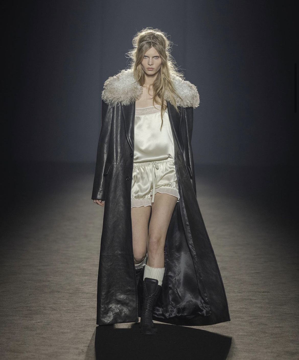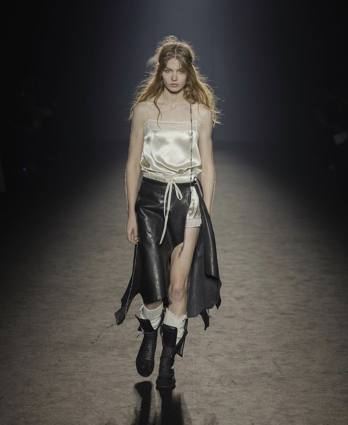 Стефано Галличи, сменивший Людовика де Сен-Сернена на посту креативного директора Ann Demeulemeester в прошлом году, представил свою вторую коллекцию для бренда. Для сезона AW '24 он обратился за вдохновением к лесу — «запутанному, необъятному миру, который многие люди за его пределами идеализируют» — и исследовал интригующую смесь грубости и хрупкости.