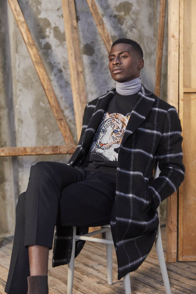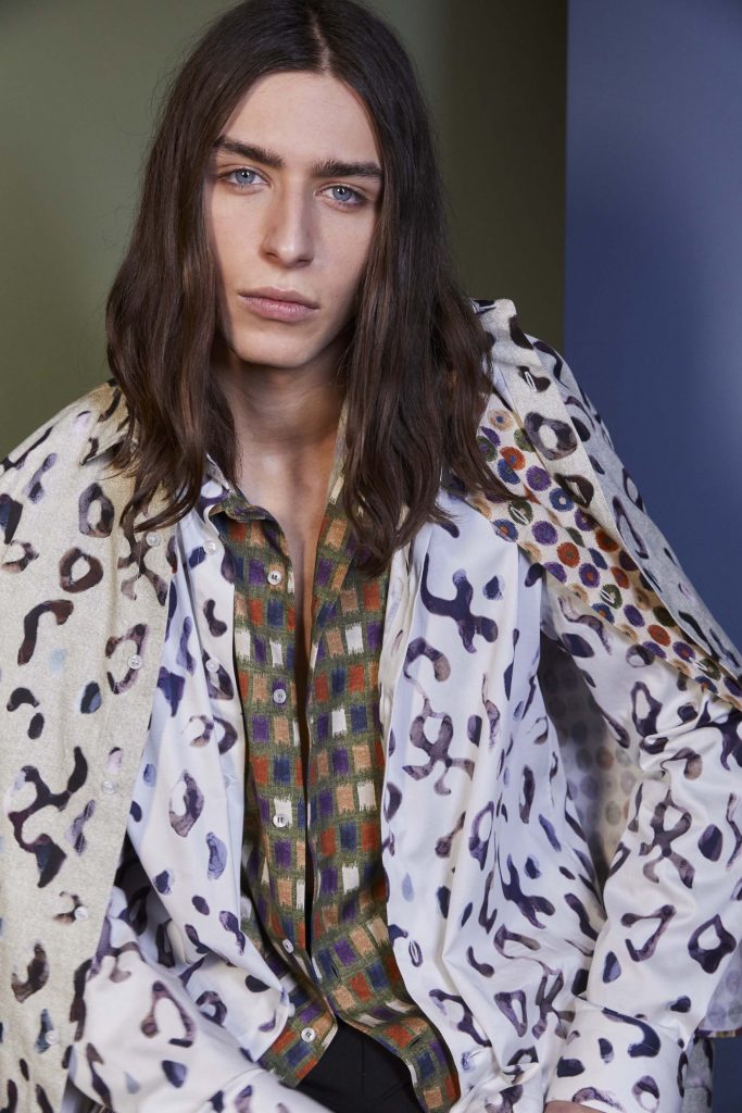 В музее Бурделя дизайнер выбрал более теплые тона, среди которых шоколадный, баклажановый, лиловый, темно-синий, для гардероба из бархата, фланели и фактурных материалов. Принты для подкладок и рубашек насыщенные, глубокие и графичные. Комфорт полностью преобладает в городском гардеробе.