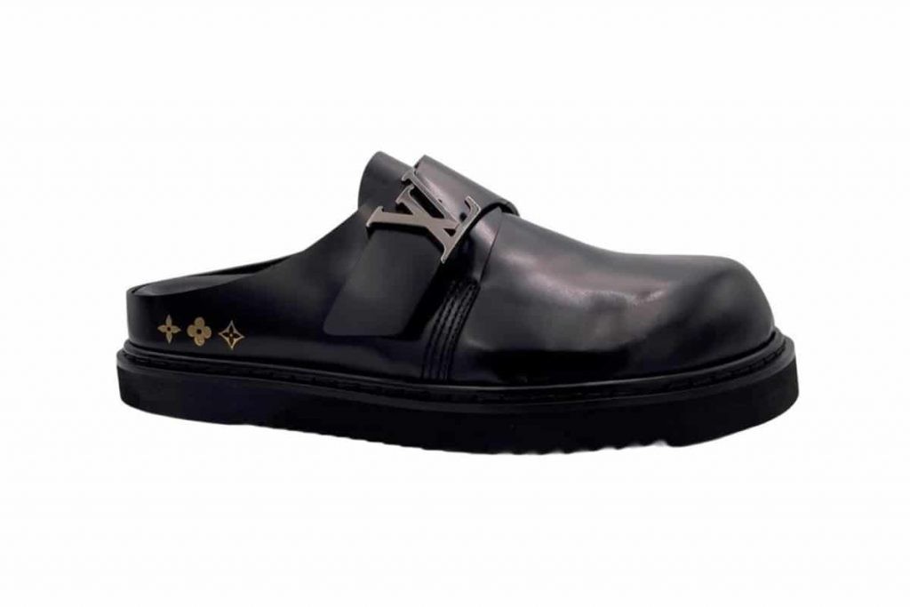Вторые мюли представлены в черном цвете с серебряным логотипом Louis Vuitton. Их цена будет порядка 1200 долларов.
