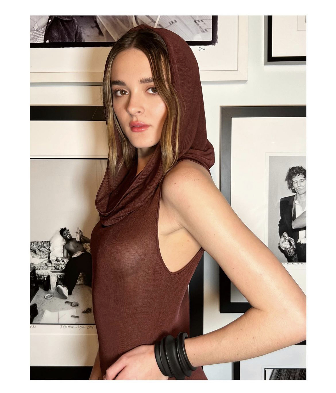 Благодаря Энтони Ваккарелло и его коллекции Saint Laurent весна-лето 2023, был задан тренд на капюшоны для вечерних выходах. Этот элемент не только придает силуэту элегантность, но и добавляет к образу загадочность и даже драматизм. Взглянуть только на Шарлотту Лоурен, которая выбрала платье шоколадного цвета бренда из осенне-зимней коллекции.