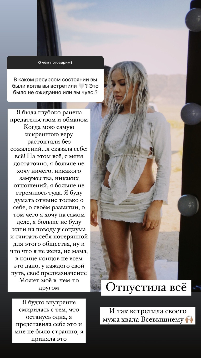 Әнші өзі және дамуы туралы ойлауға шешім қабылдады. «Мен жалғыз қалатынымды іштей қабылдағандай болдым. Мұны елестетіп көрдім және қорықпадым, мен оны қабылдадым. Жеңілдеп қалдым. Осылайша мен күйеуіммен кездестім, Аллаға шүкір», — деп мойындады әнші.