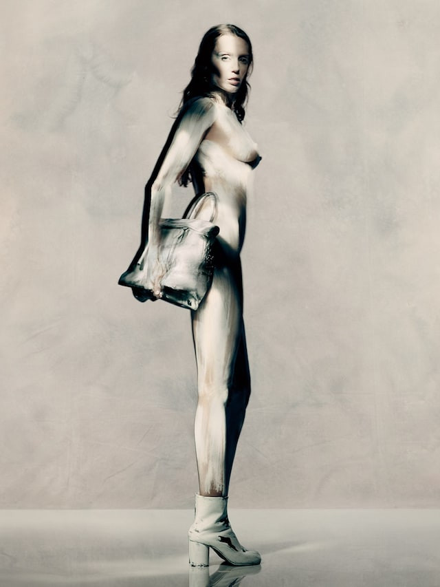 «Обнаженные кадры Паоло — его визитная карточка, его подпись. Лишь тело, покрытое краской, и знаковые окрашенные ботинки Tabi — в этот миг Maison Margiela и я стали одним целым»,
