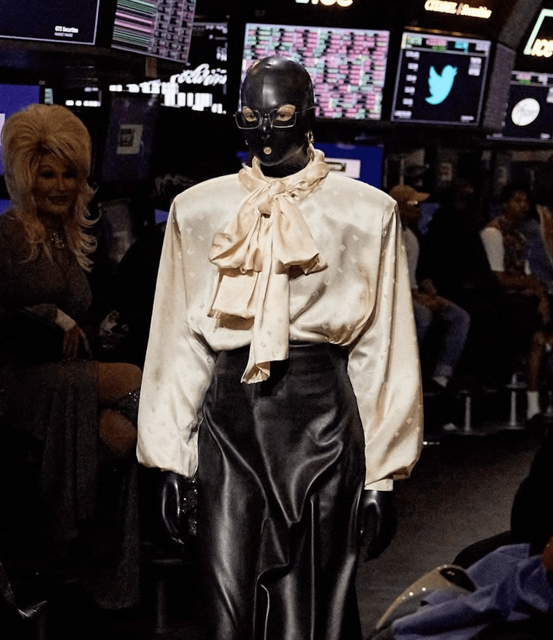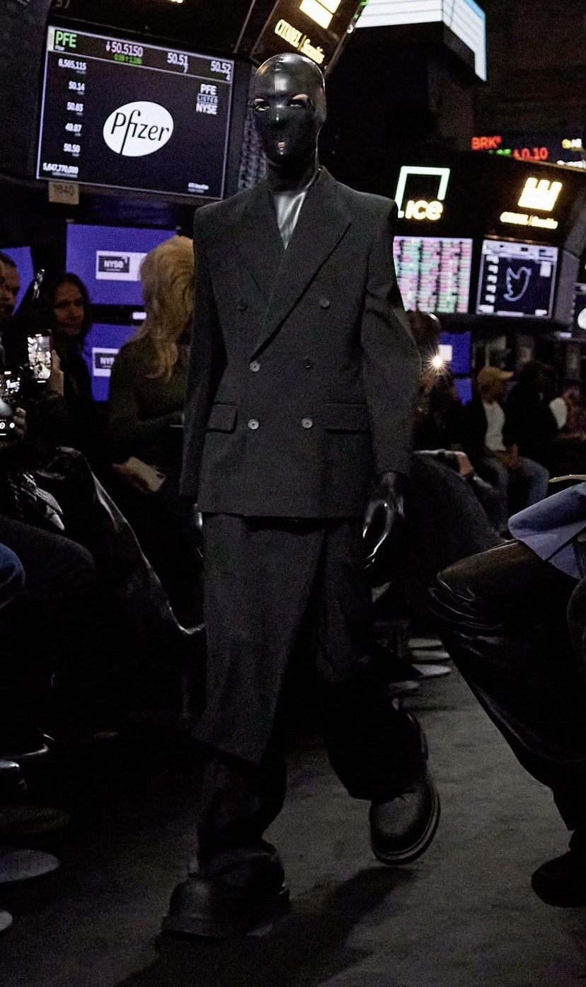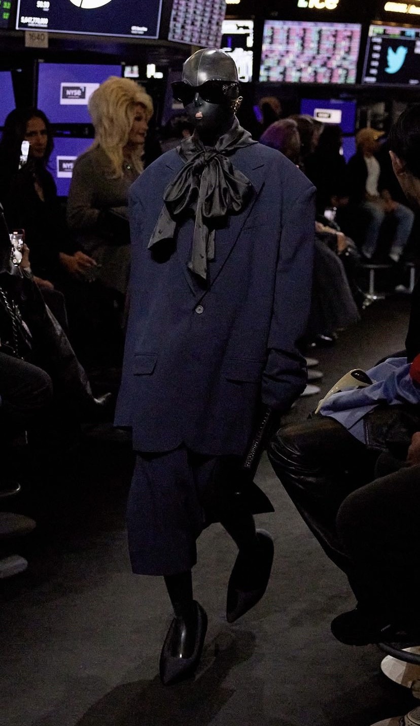 Показ Balenciaga прошел в историческом здании фондовой биржи в Нью-Йорке и начался со звонка в колокол. Это было воскресное утро и на смену трейдерам на подиум вышли модели в костюмах из латекса. И если вам кажется, что вы попали на рейв мародеров, то вы не одиноки.