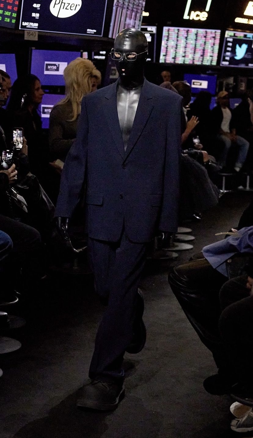 Не отказываясь от своей изюминки, Демна иронически показал отсутствие индивидуальности у миллионов людей, которые живут в Big Apple и чья жизнь сводится лишь к работе в условиях жестокого капитализма.