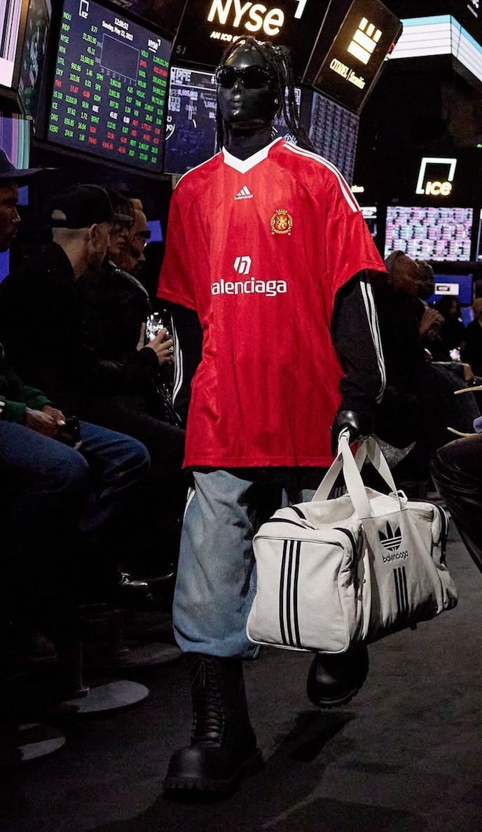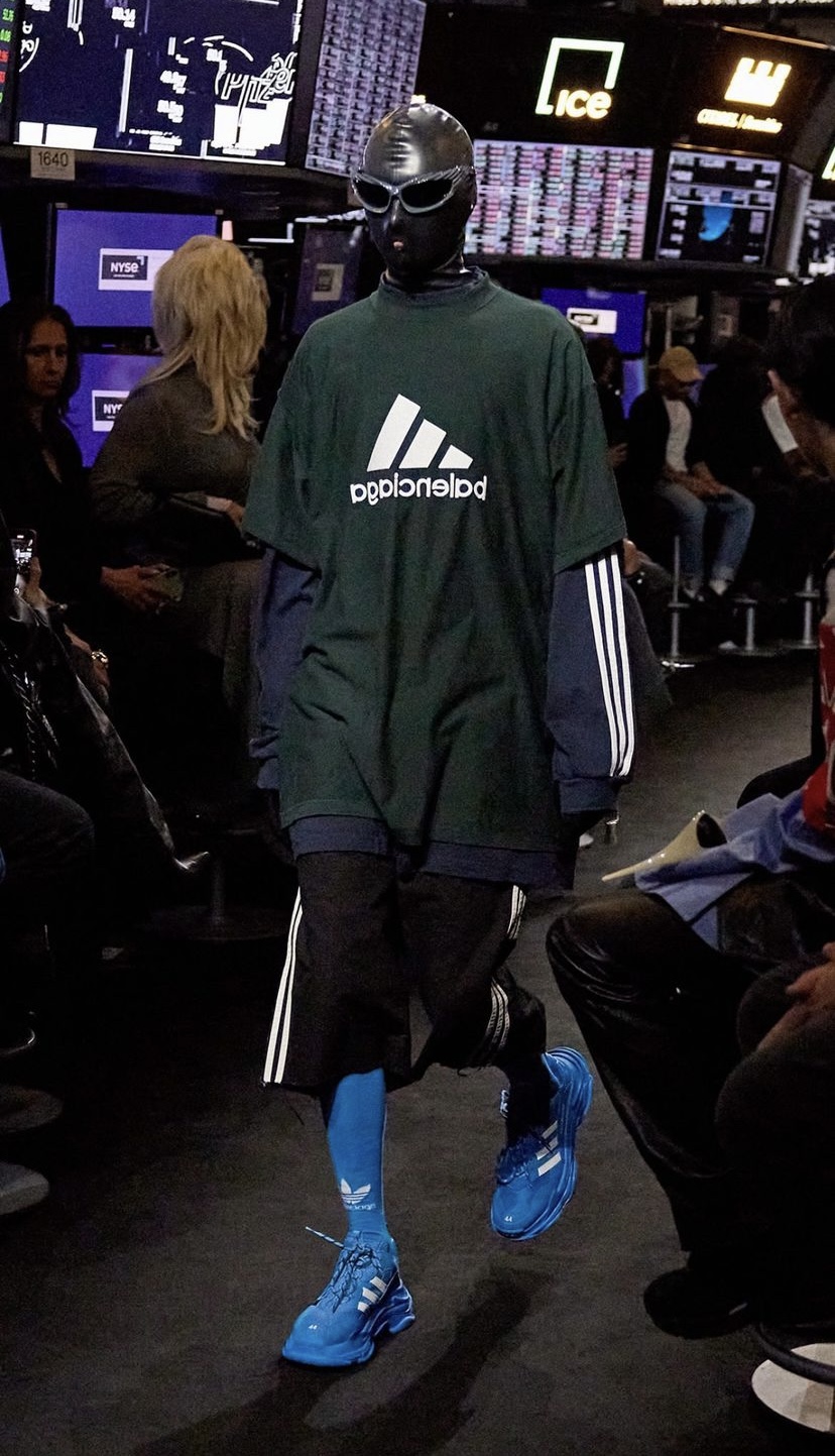 И вот, когда показалось, что идея коллекции разгадана, французский модный дом удивил всех, представив новое, не анонсированное сотрудничество с Adidas. На спортивные костюмы, огромные футболки, куртки-халаты и кроссовки Triple S поместили гибридный логотип, объединяющий три полоски и лого Balenciaga.
