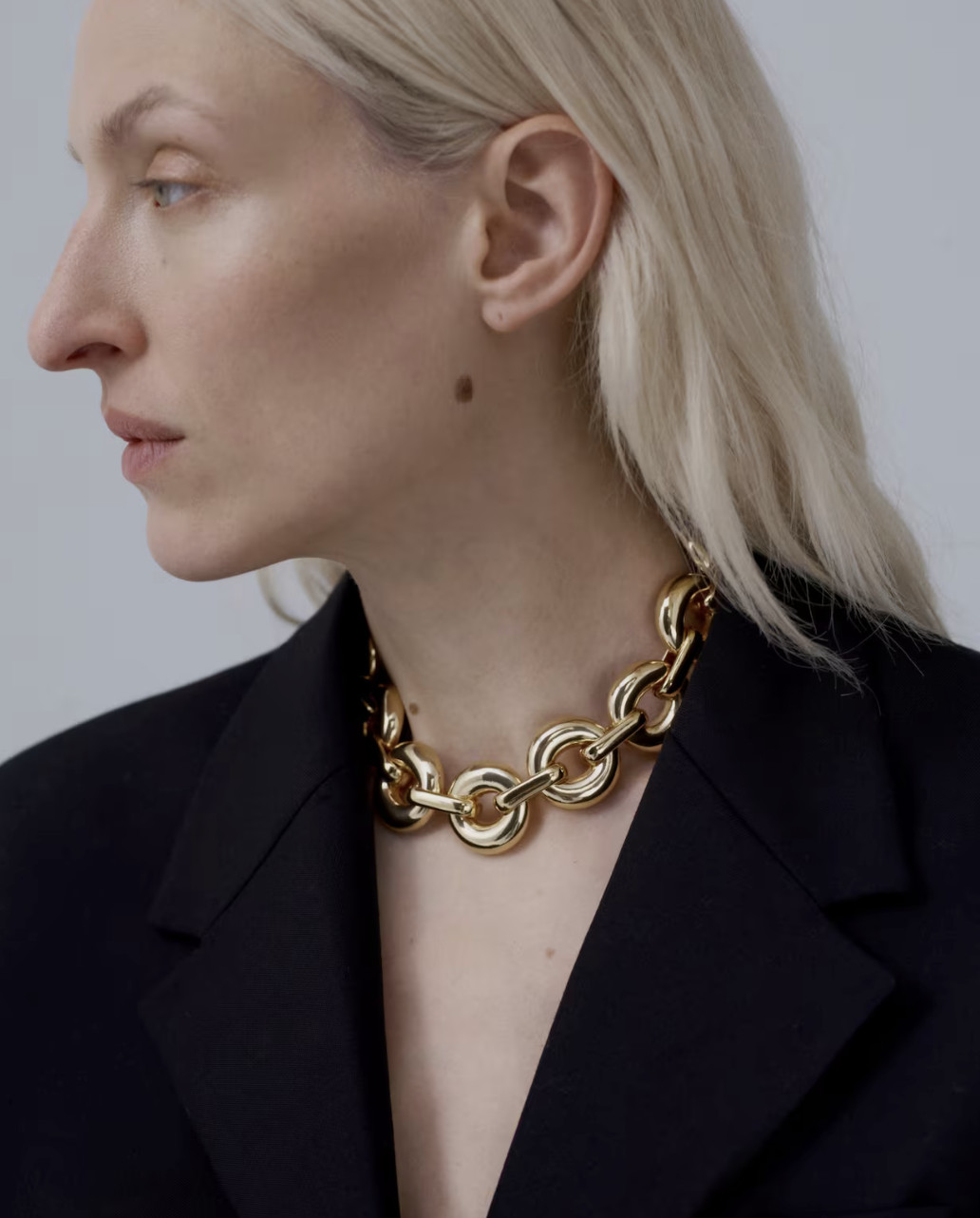 Мода на все большое продолжает набирать обороты. Не обошла тенденция стороной и ожерелья. В массивных украшениях на шее уже предстали Хантер Шафер и Ким Кардашьян в рамках Haute Couture Week. Собрали 10 стильных опций, которые помогут привнести акцентных ноток в образ.