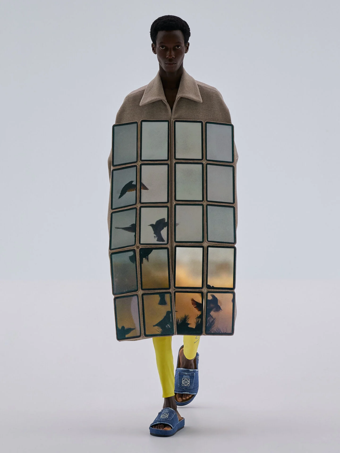 На экранах, которые носили модели, можно было увидеть птиц, рыб, поцелуи людей. Loewe сделали акцент на органическом, чтобы показать важность устойчивой моды.