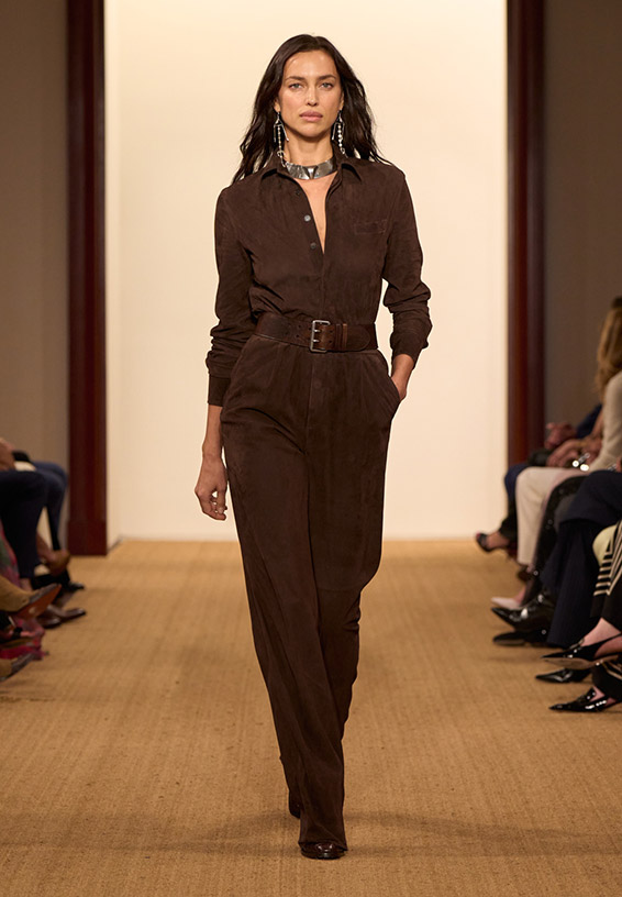 Ральф Лорен известен тем, что на протяжении многих лет устраивал грандиозные показы. Он захватывал Central Park для празднования юбилея и даже устраивал шоу на фоне своей впечатляющей коллекции автомобилей. Однако на этот раз дизайнер решил обойтись минимализмом — конечно, в своем понимании.