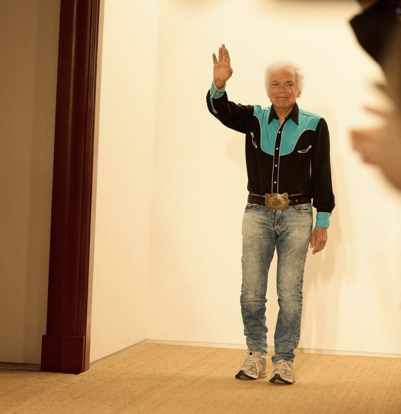 Сам Лорен вышел на поклон в черно-бирюзовой рубашке в стиле вестерн и любимых джинсах, наслаждаясь бурными аплодисментами. Напоследок основатель марки станцевал небольшую джигу на подиуме с женой Рики, с которой он в скором времени отметит 60 лет брака.