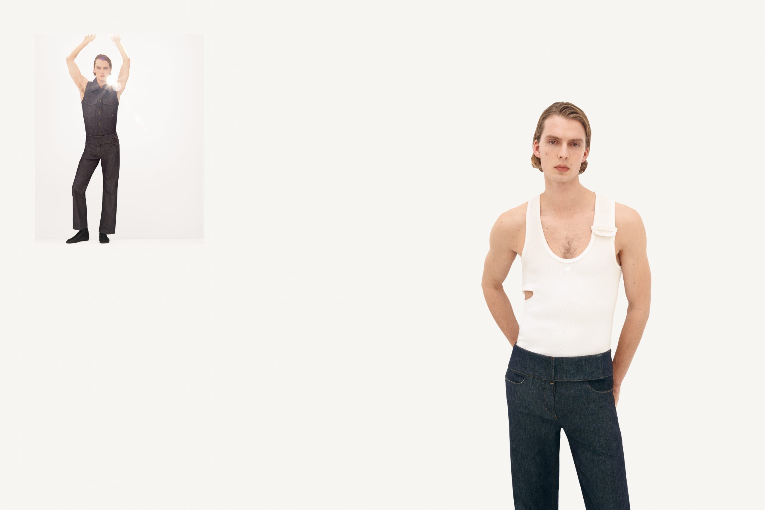 Коллекция насыщена минималистичными и одновременно запоминающимися образами, которые сочетают строгость и игривость. Структурированный джинсовый костюм излучает особую элегантность, но в то же время остается легким и непринужденным. Топ Carré Magique ловко играет с линиями, а костюмы и платья с вырезами демонстрируют пикантность.