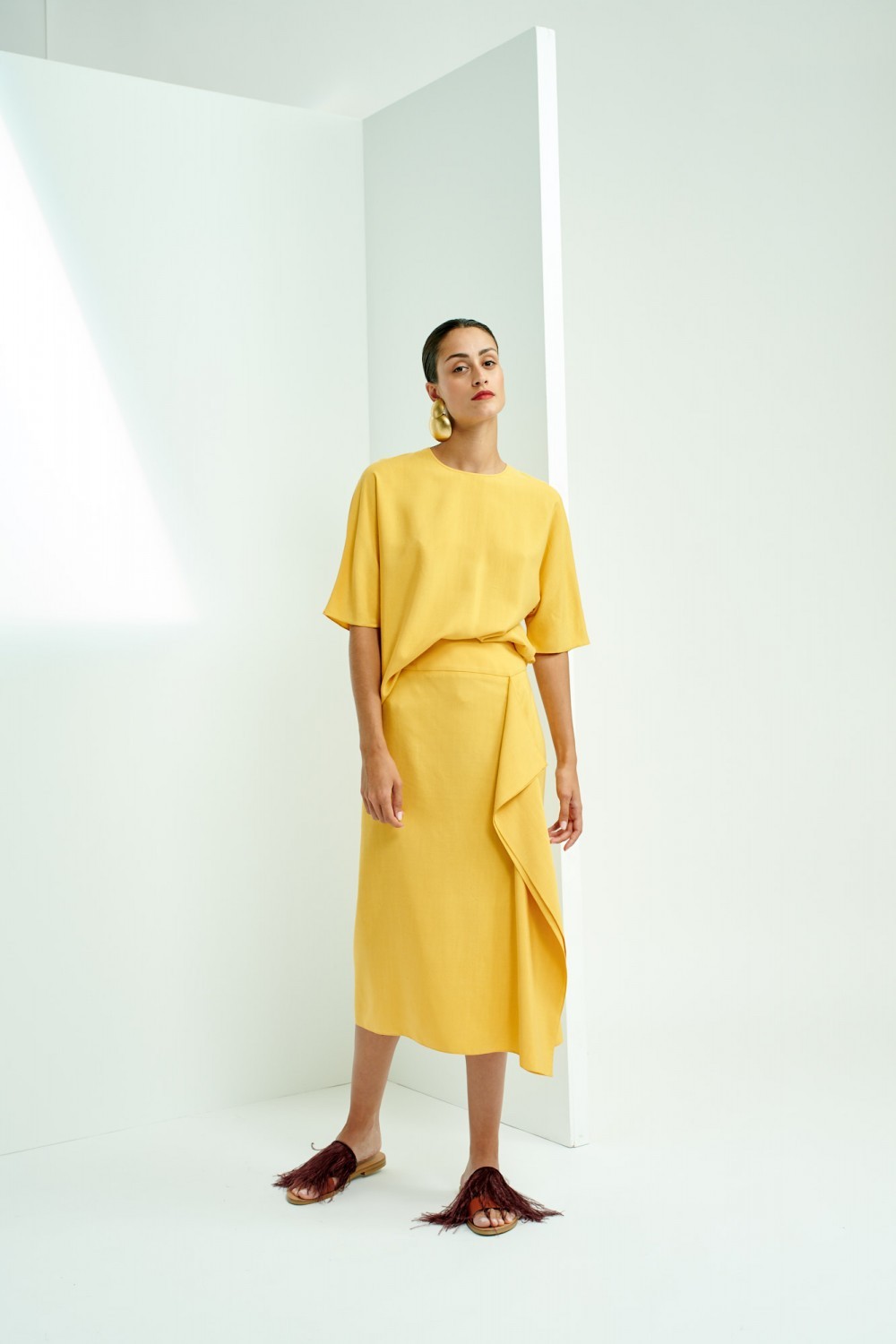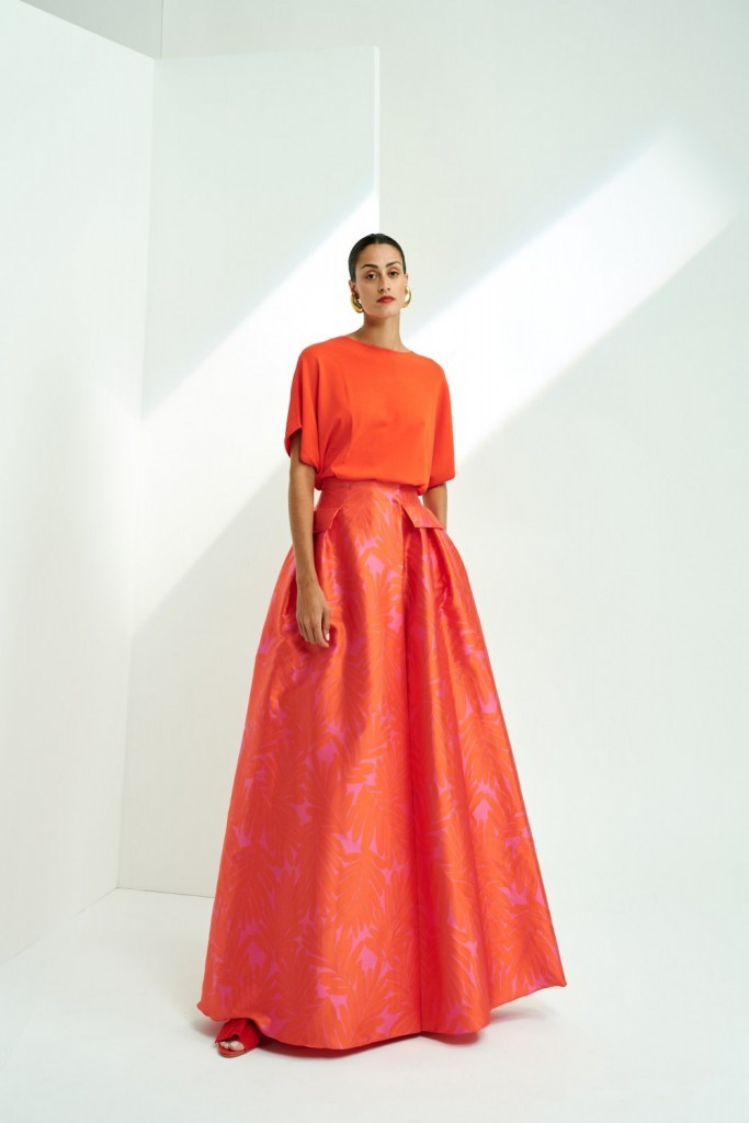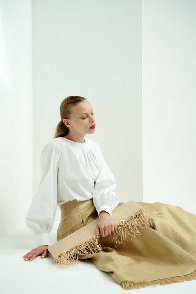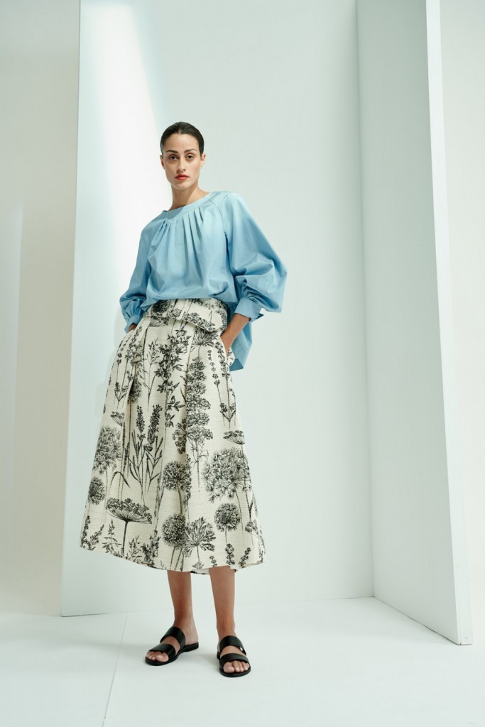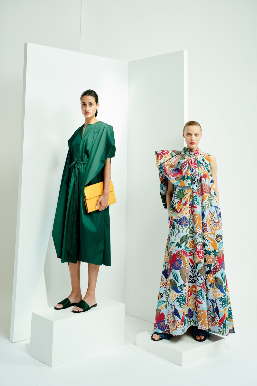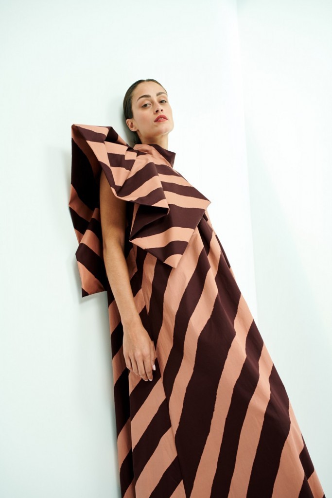 На весну-лето 2021 Эдуард Вермейлен изучает спектр от классического до чувствительно стильного, привлекая противоположности. Если материалы, то матовые и шелковые, если полоски, то широкие и деликатные, если цвета, то однотонные или принт. При этом не забывая о деталях, таких как широкий ремень, элегантные клатчи из соломы, изысканные аксессуары.