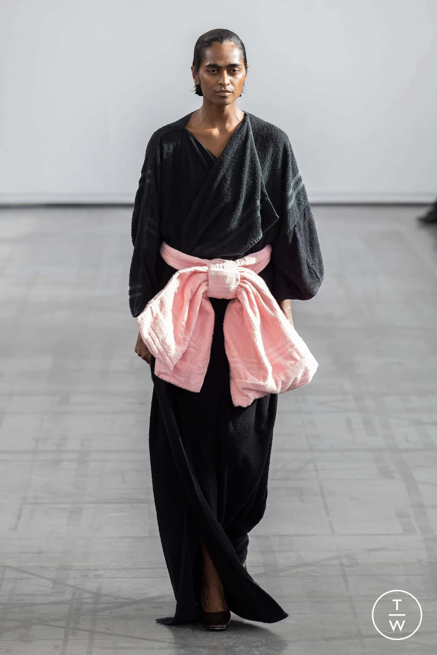 Вне времени и вне трендов — так можно описать коллекцию Marie Adam-Leenaerdt. В рамках коллекции дизайнер представил две концепции: первая часть дефиле пригласила гостей «отдохнуть» на пляже, а вторая была вдохновлена более формальной эстетикой. Модели выходили на подиум в купальниках, дополненных юбками, издали напоминающими парео, и махровых халатах с огромными розовыми бантами. Наряду с этим были показаны и строгие oversize-костюмы, и куртки из денима, и платья длины миди. Образы были дополнены огромными сумками, которые имеют все шансы стать бестселлерами бренда в следующем сезоне.
