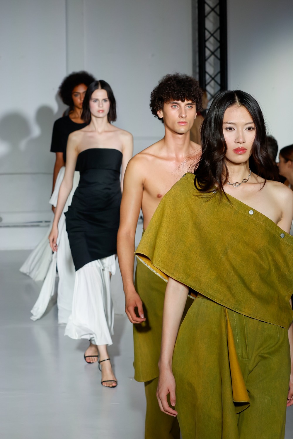 Изысканные архитектурные силуэты, асимметрия и драпировка — лауреат премии ANDAM Мосси Траоре в весенне-летней коллекции обратился к ключевым элементам, закрепившимся за его именем. При создании изделий он использовал корейский хлопковый поплин, шерсть, деним и японскую органзу — все эти материалы дополнялись льном и габардином. Стоит отметить и детали, драпированные вокруг тела, которые напоминают традиционное сари и отдают дань Issey Miyake и Madame Grès.
