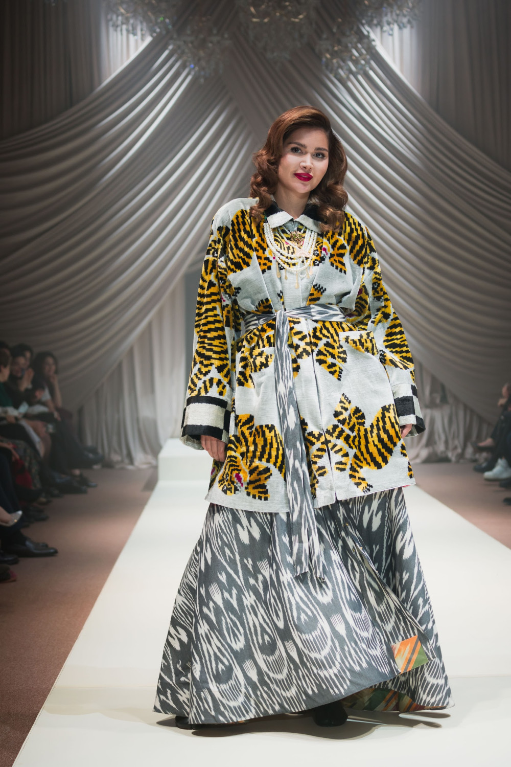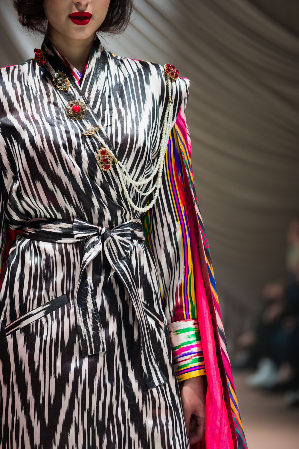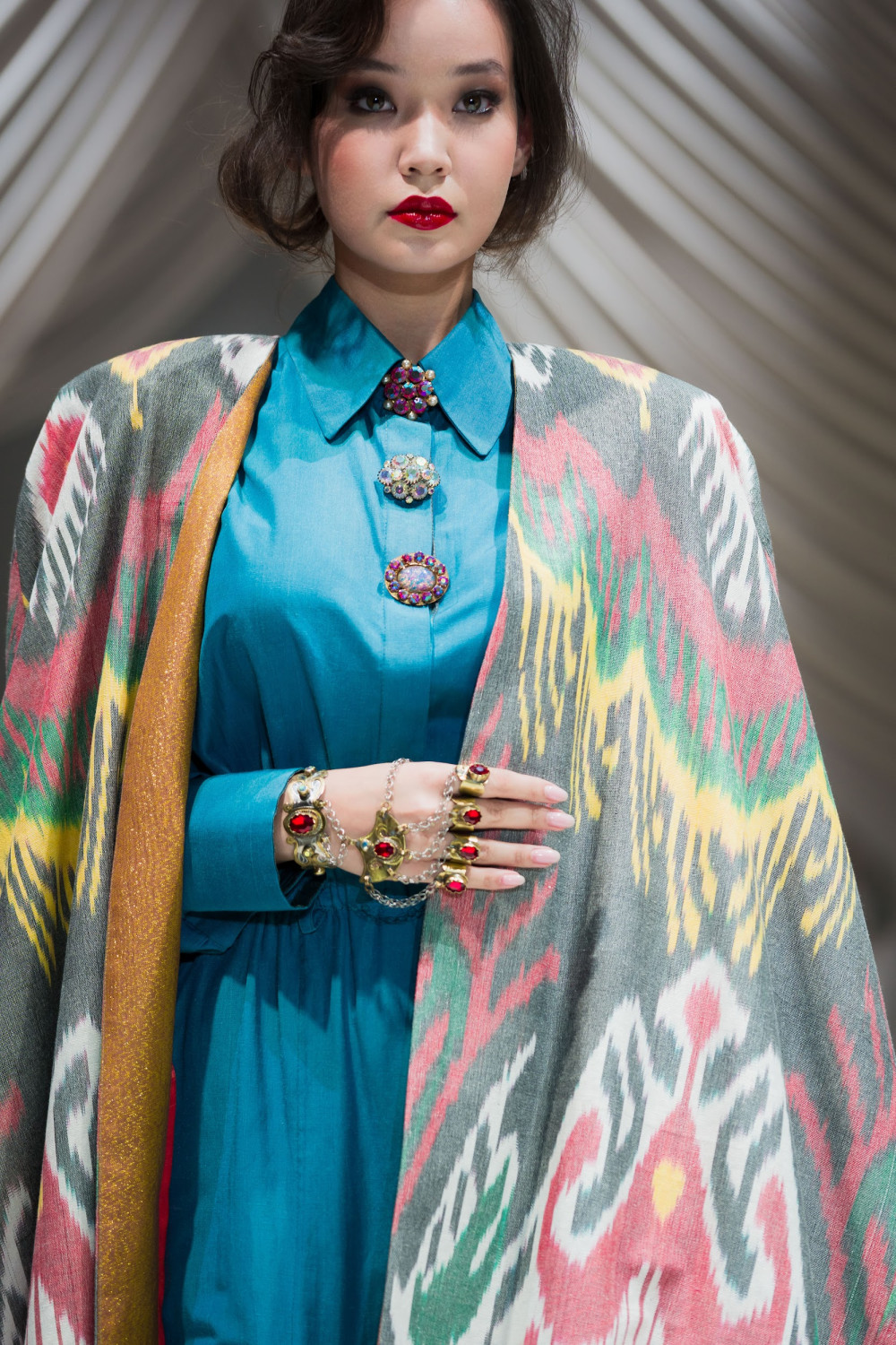 Камола Рустамова, основатель бренда, заявляет: «Я горжусь тем, что женщины сегодня не боятся ничего. Эта коллекция посвящена нам — женщинам, которые остаются сильными, несмотря на преграды и стереотипы». Чапаны с яркими принтами, крупные броши на лацканах, которые отсылают к богатству Востока, и пуговицы в форме цветов — все эти детали создают образ не только стильной, но и сильной женщины, готовой к любым вызовам.