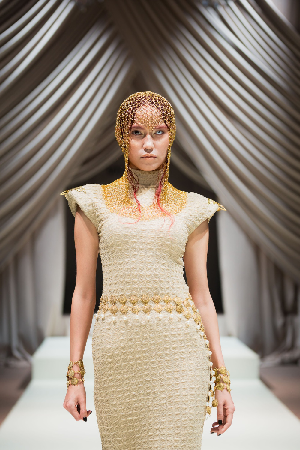 Искусственный интеллект — не просто концепция будущего, а уже неотъемлемая часть нашей повседневной жизни. Вдохновленная этим, Мадина Махмудова, основательница бренда Cosmodinass, представила коллекцию, наполненную футуристической эстетикой, где прошлое встречается с будущим, а образы киборгов — наполовину людей, наполовину машин — становятся символами преодоления границ реальности.