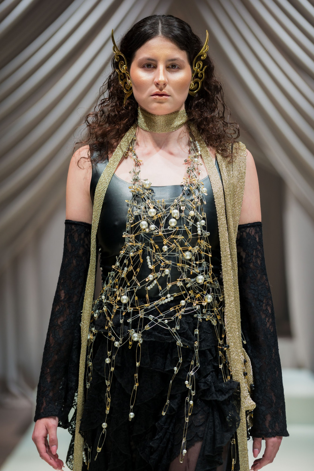 «Мы хотели показать, как образы прошлого могут переплетаться с новыми технологиями, создавая гармонию между тем, что было и тем, что станет частью нашей реальности», — говорит дизайнер. Модели, напоминающие египетских жриц в кольчужных доспехах, друидов в вязаных изделиях или русских дворян в меховых шапках, отражают различные исторические эпохи, адаптированные для нового мира.