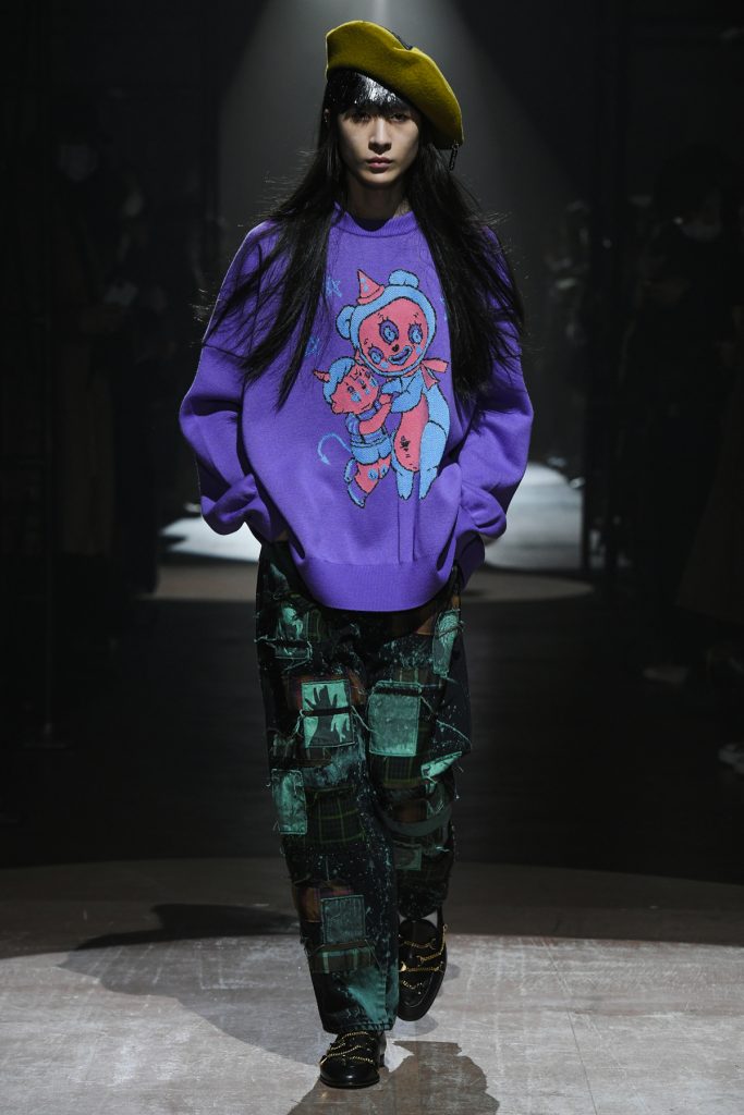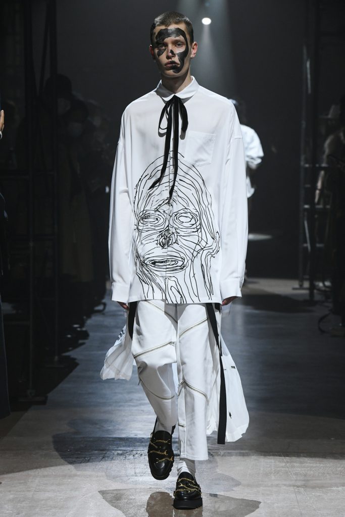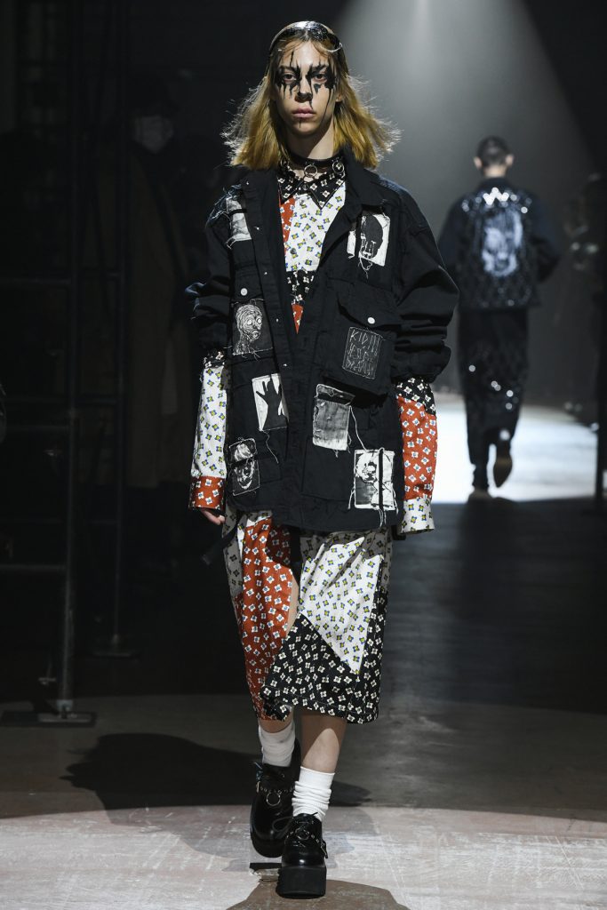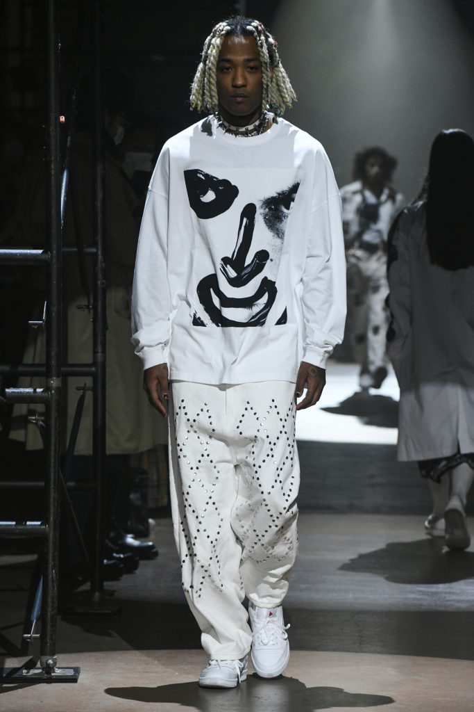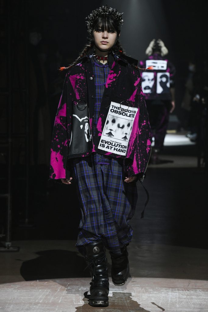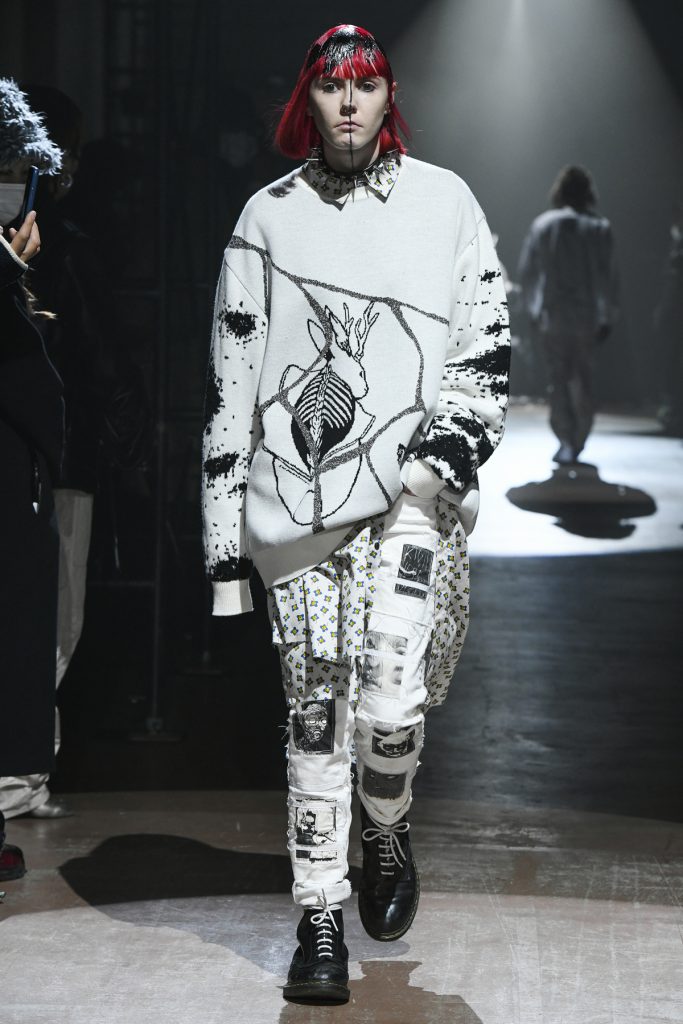 Панк-эстетика уже стала узнаваемой визитной карточкой KIDILL. Но для новаторских решений дизайнер постоянно сотрудничает с различными художниками с интуитивным мышлением. В этом сезоне – это Джесси Дракслер из Лос-Анджелеса, который выражает тьму различными методами, такими как живопись и коллаж, наполненная ее красотой и изысканностью.