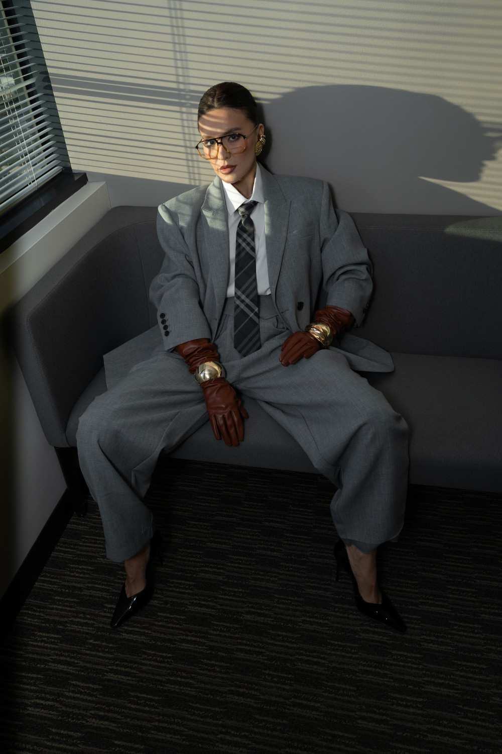 Анека: Совсем недавно я изучала модные тенденции и актуальные направления стиля. Тогда я увидела фотографию Беллы Хадид с последнего показа Saint Laurent. Модель была в маскулинном костюме с галстуком и очками — воплощение стиля Office Сore, который сейчас особенно близок мне.